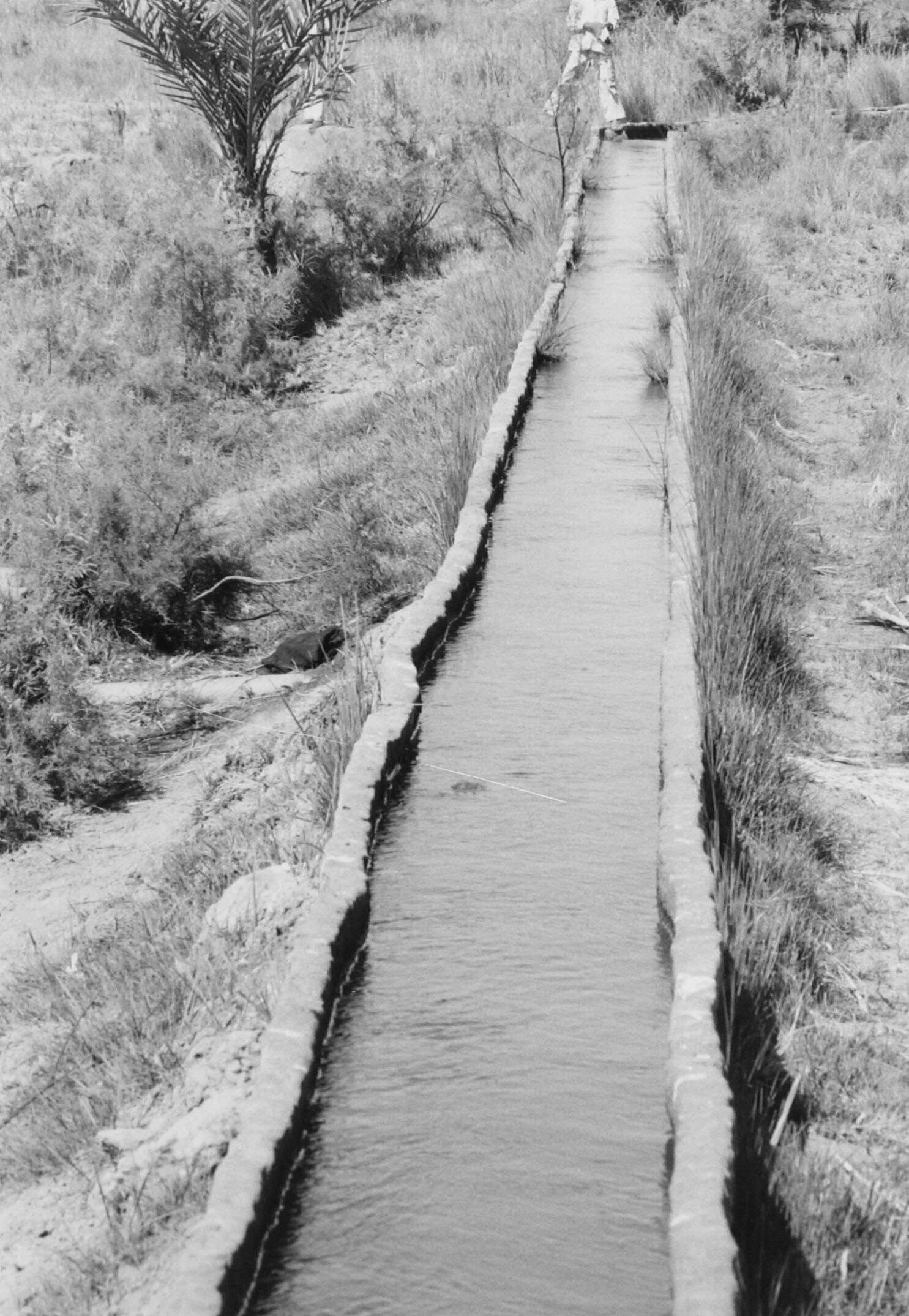 Gedeelte van nieuw irrigatie-kanaal in Kharga oase