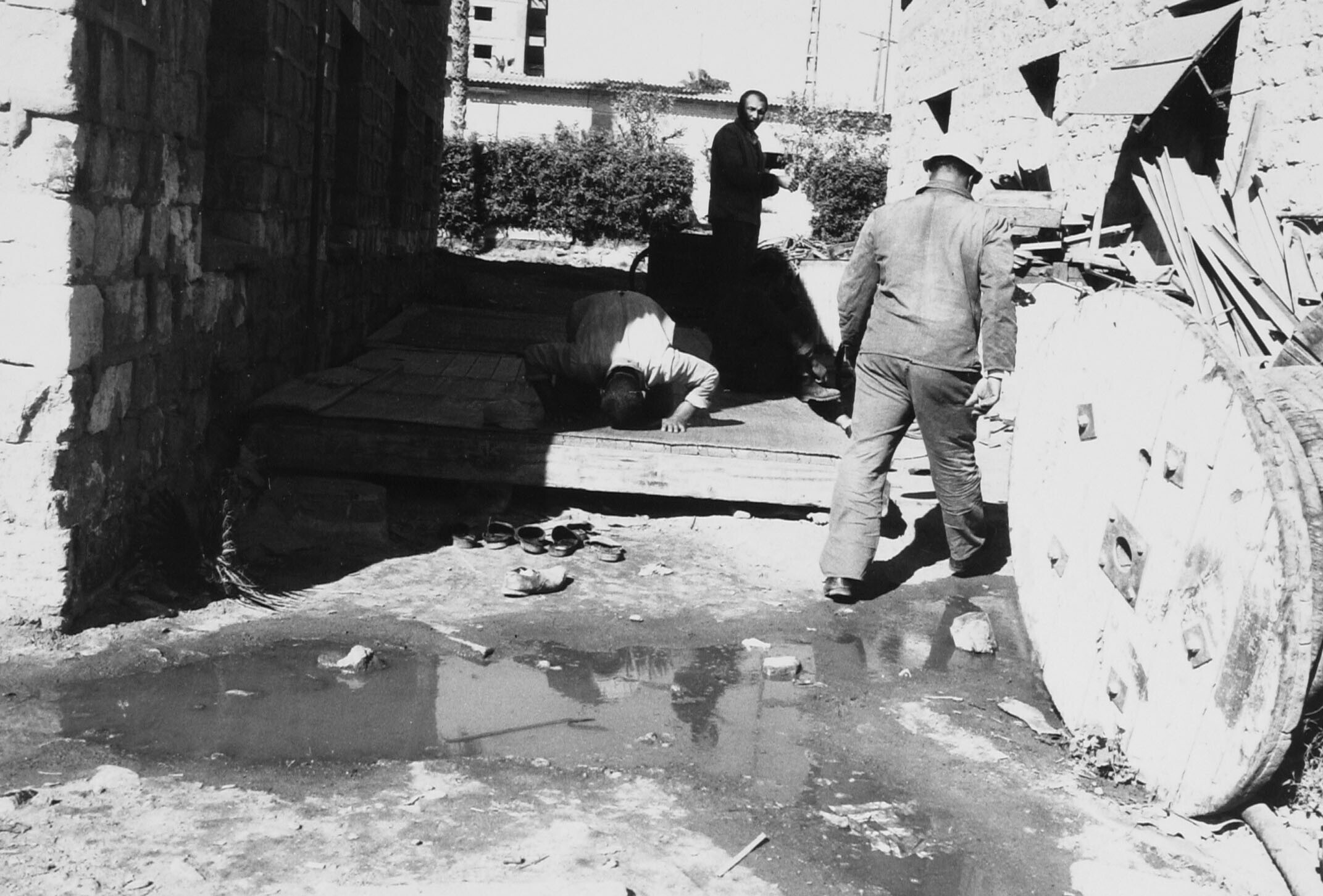 Gebedstijd op een bouwplaats in Dokhi (Caïro