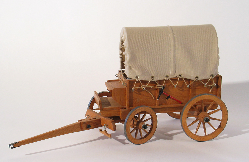 Huifkar, miniatuur, van hout met linnen kap, vervaar...