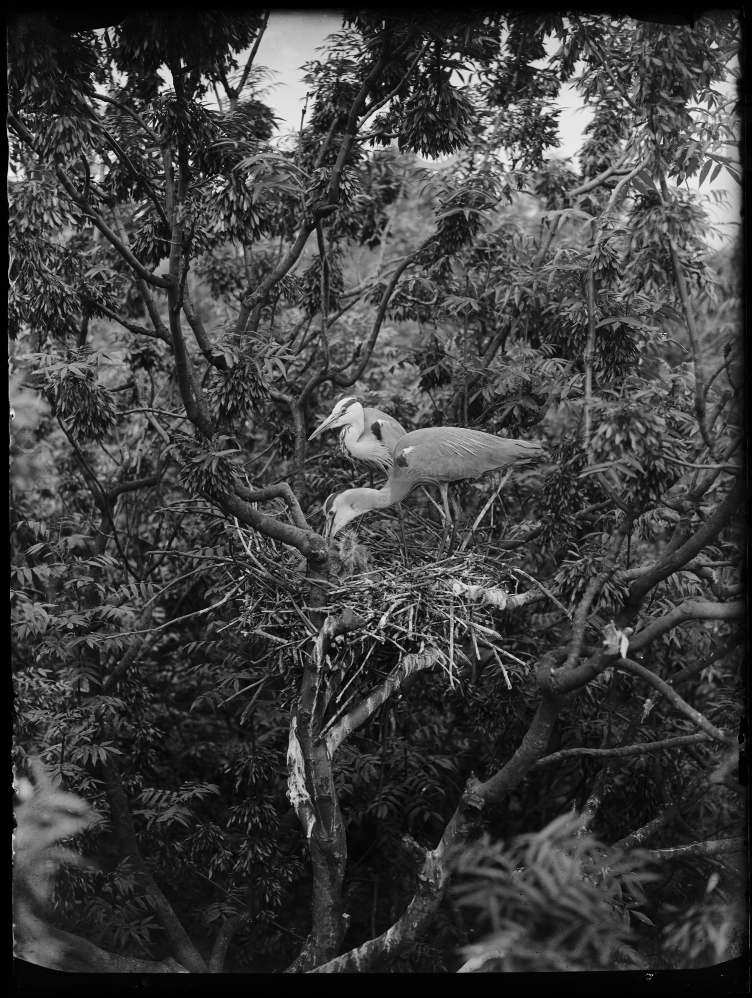 Jonge reigers op nest, Sloten (1934)