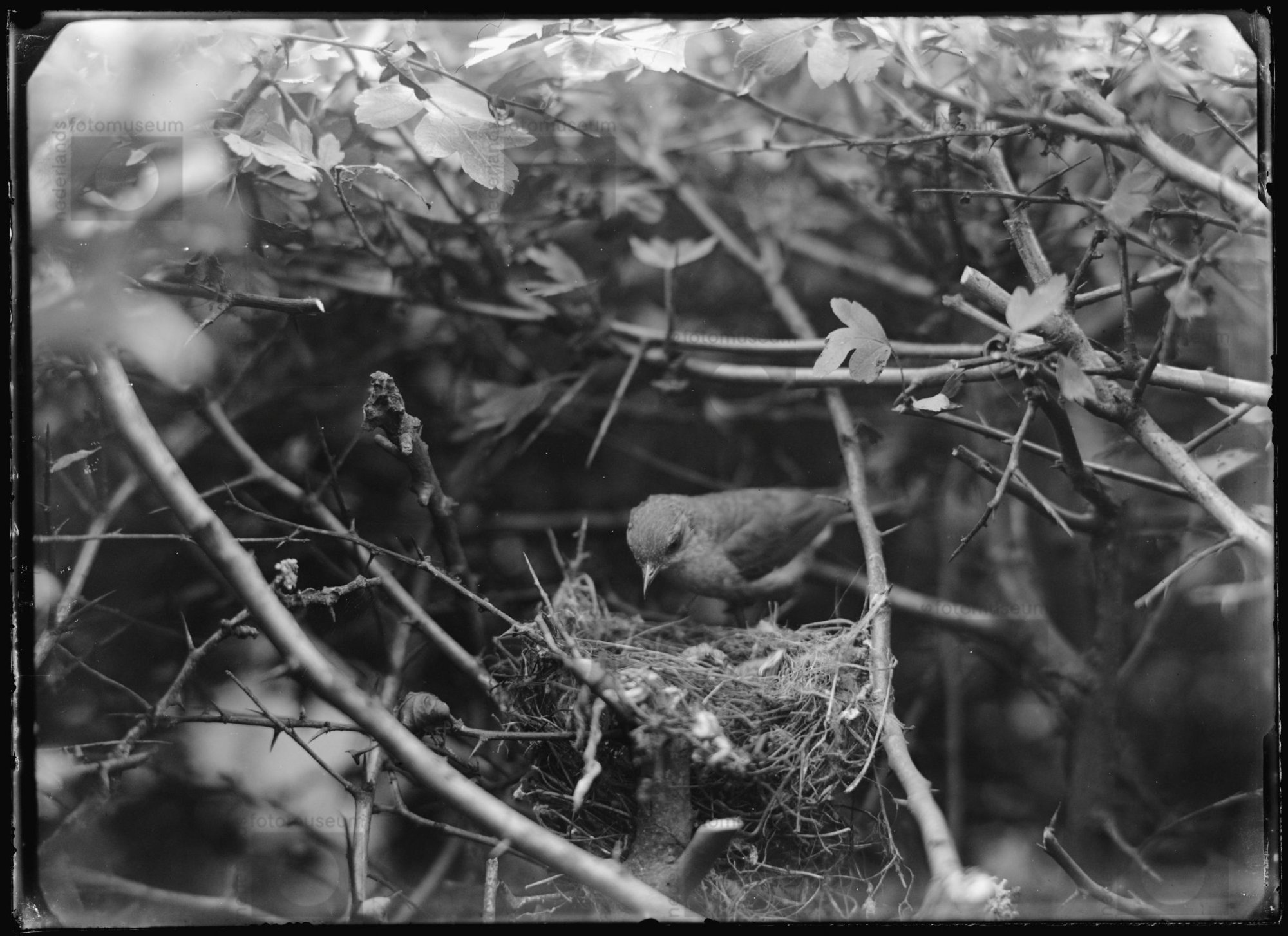 Braamsluiper bij nest met jongen, Gietelo (1916)