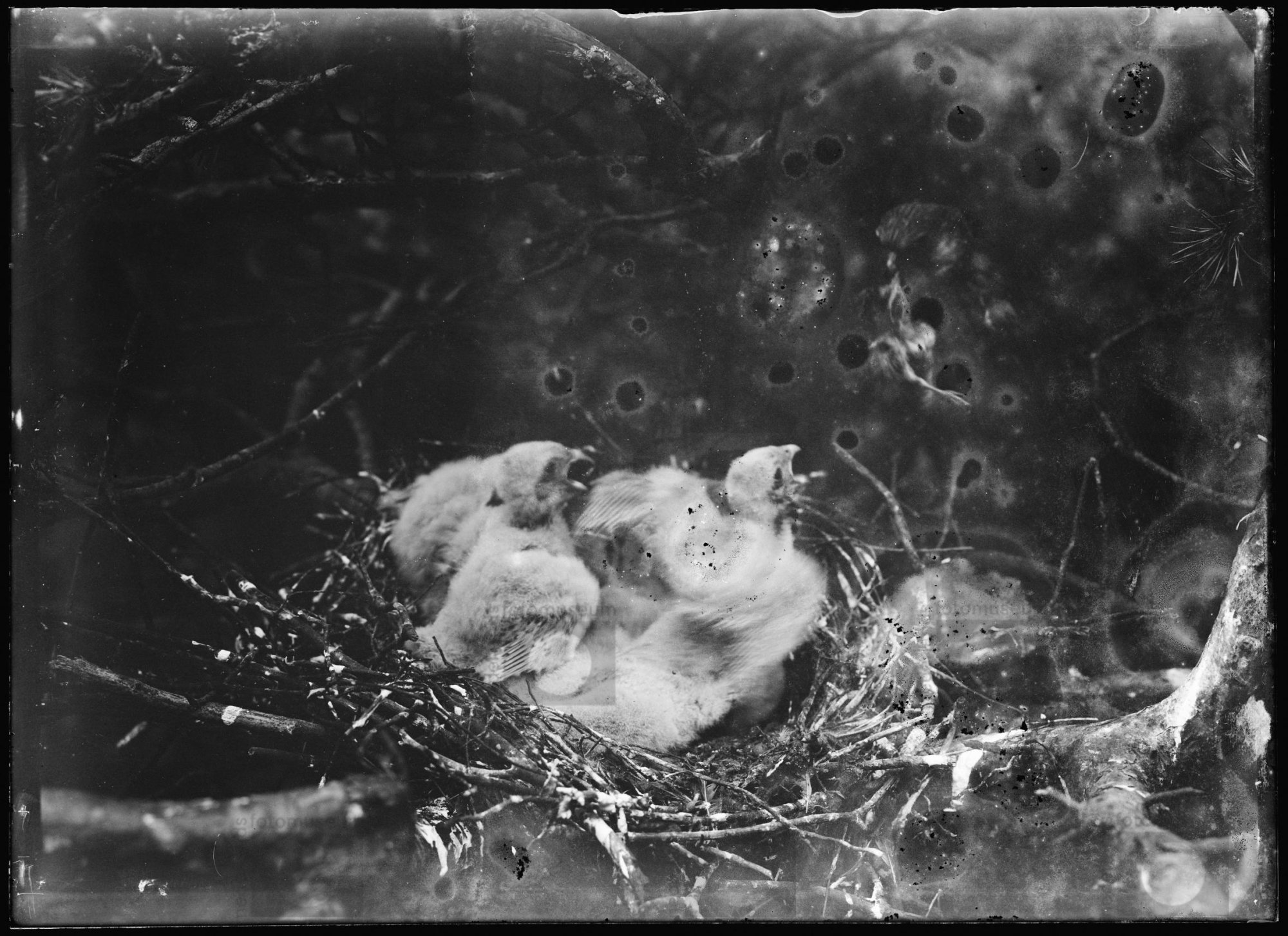 Fluiter bij nest met jongen, Gietelo (1910)