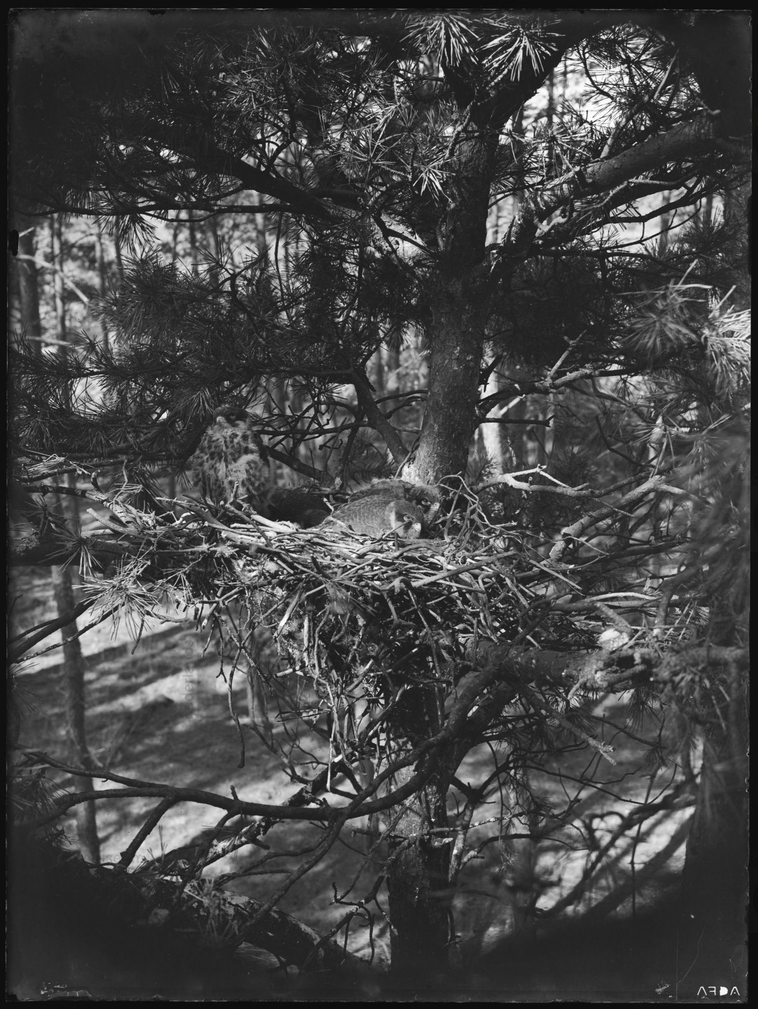Torenvalk bij zijn nest met 5 jongen, Gietelo (1910)