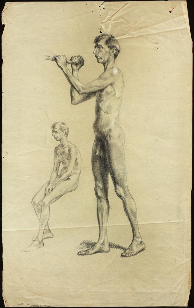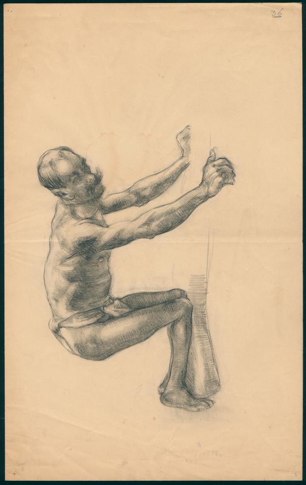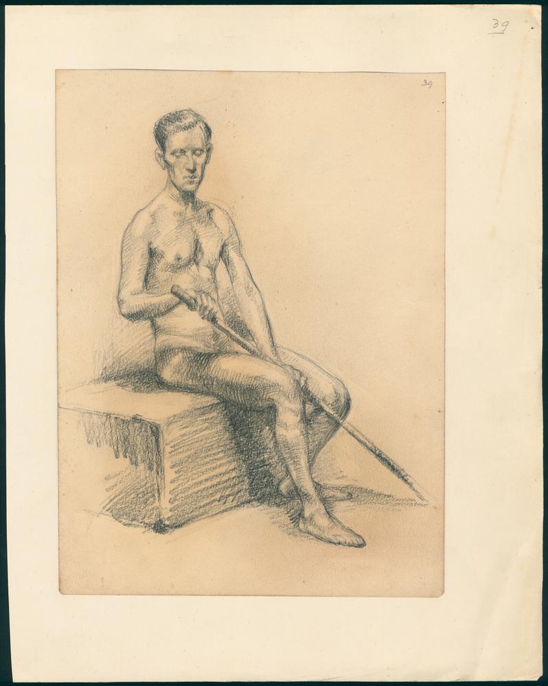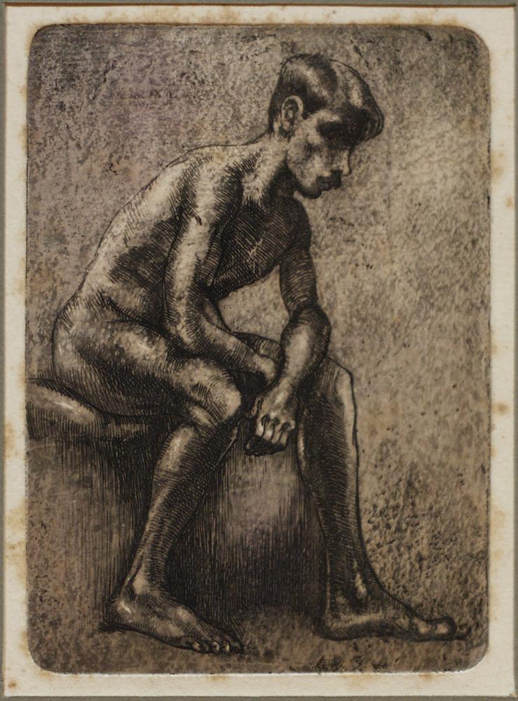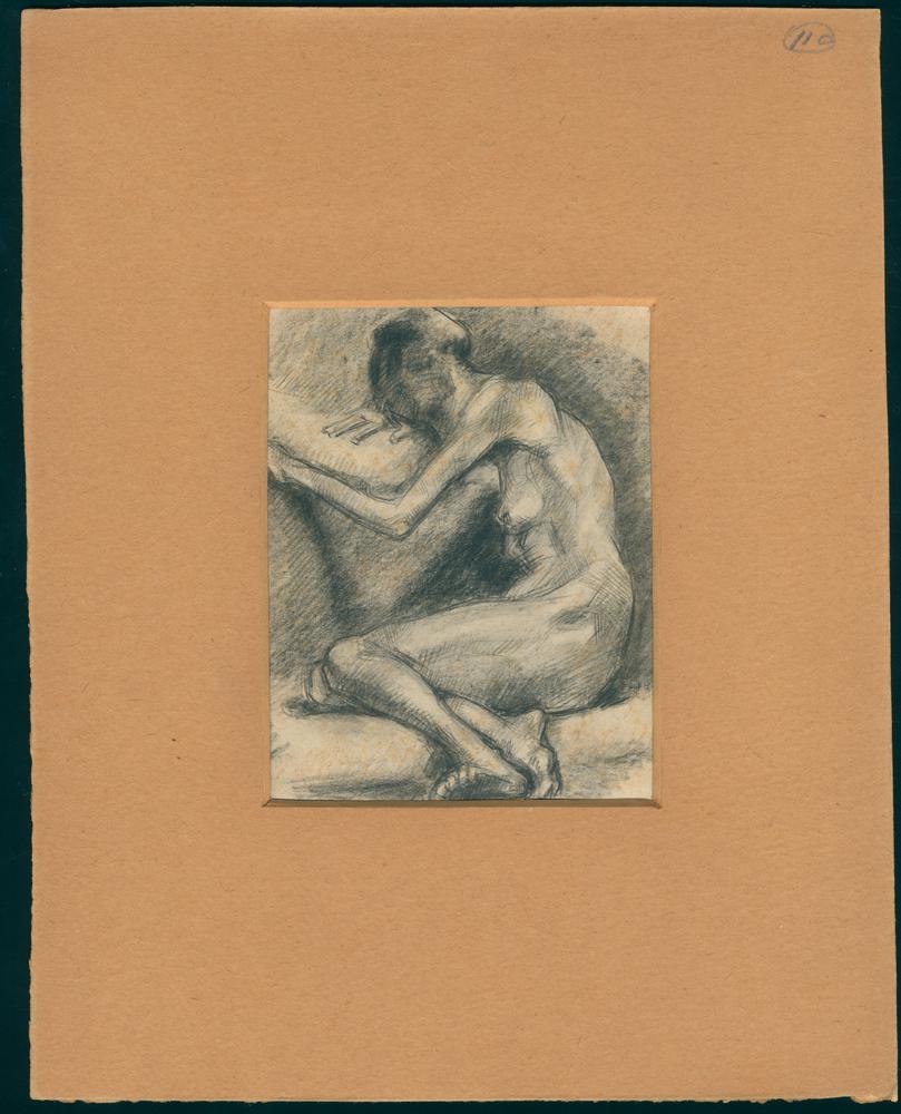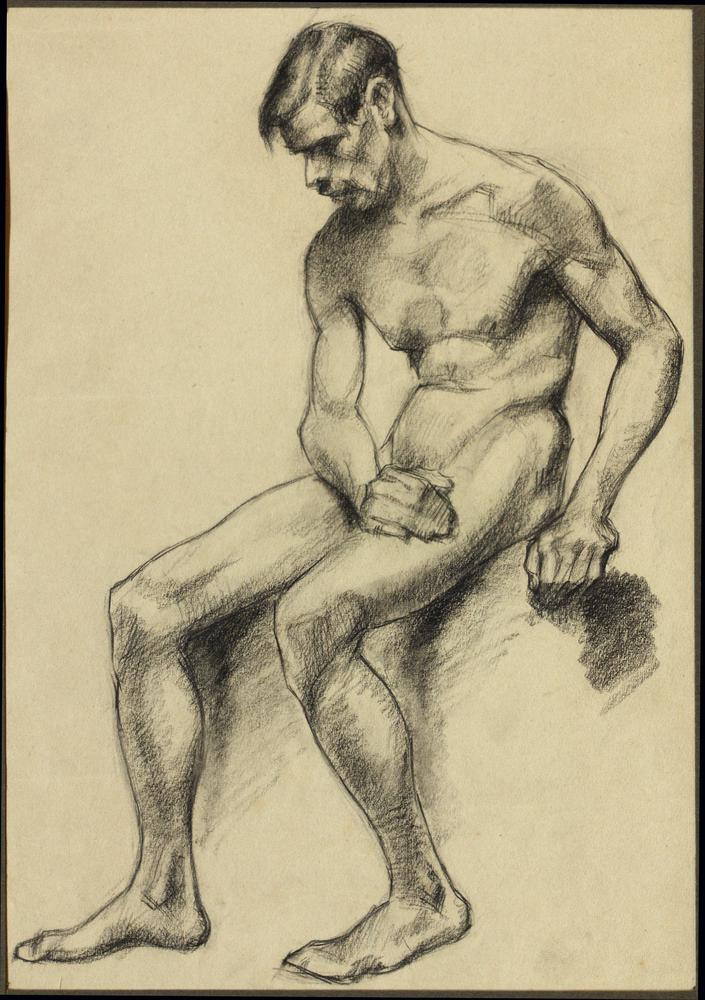 Zittende naakte jonge man