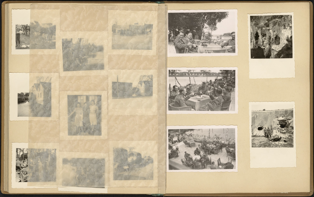 Een Luftwaffe Gefreiter maakt aantekeningen op een k...