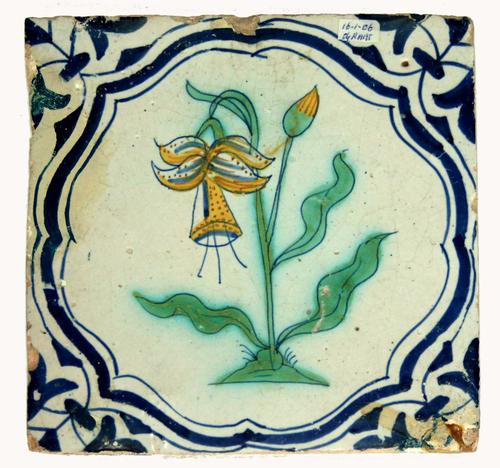 Bloemenvaas. Polychroom schouwtegel van een bloemenv...