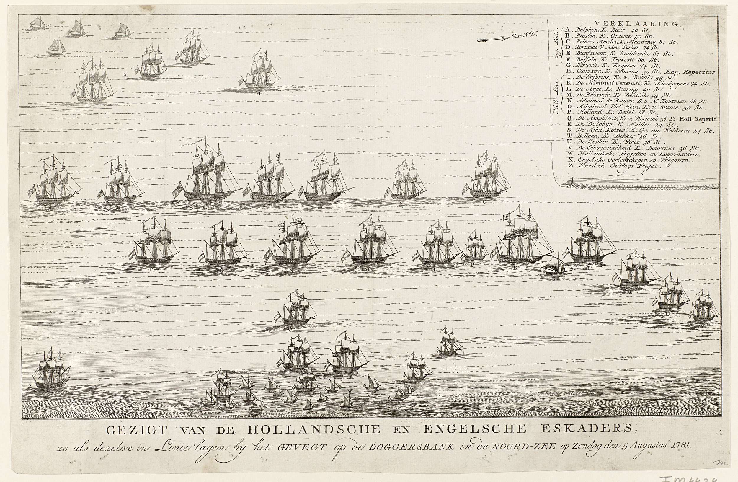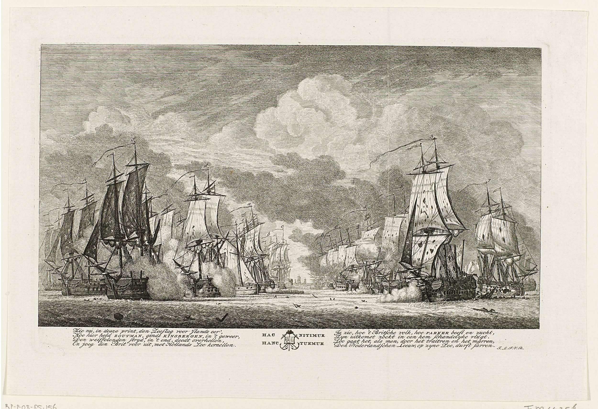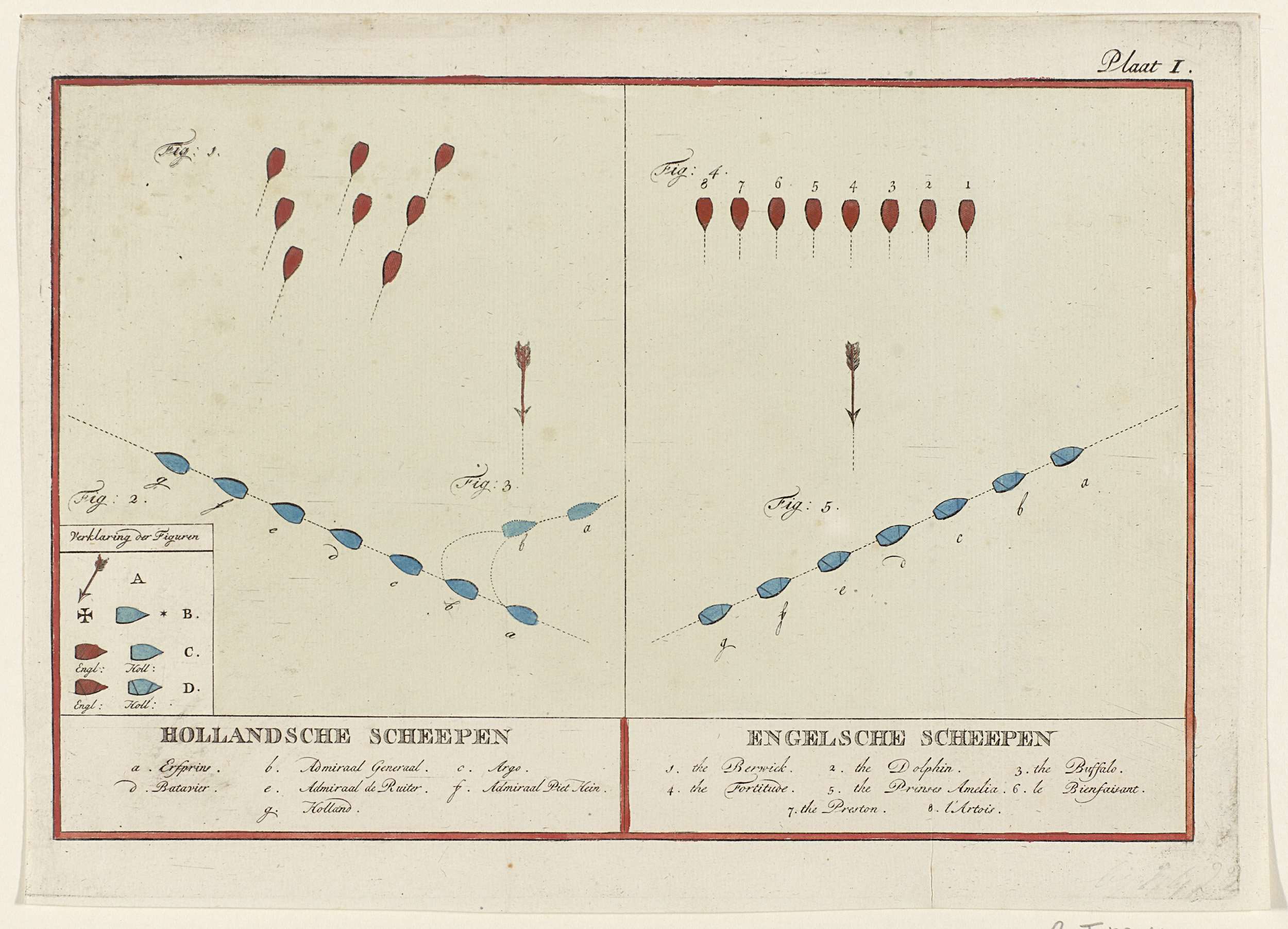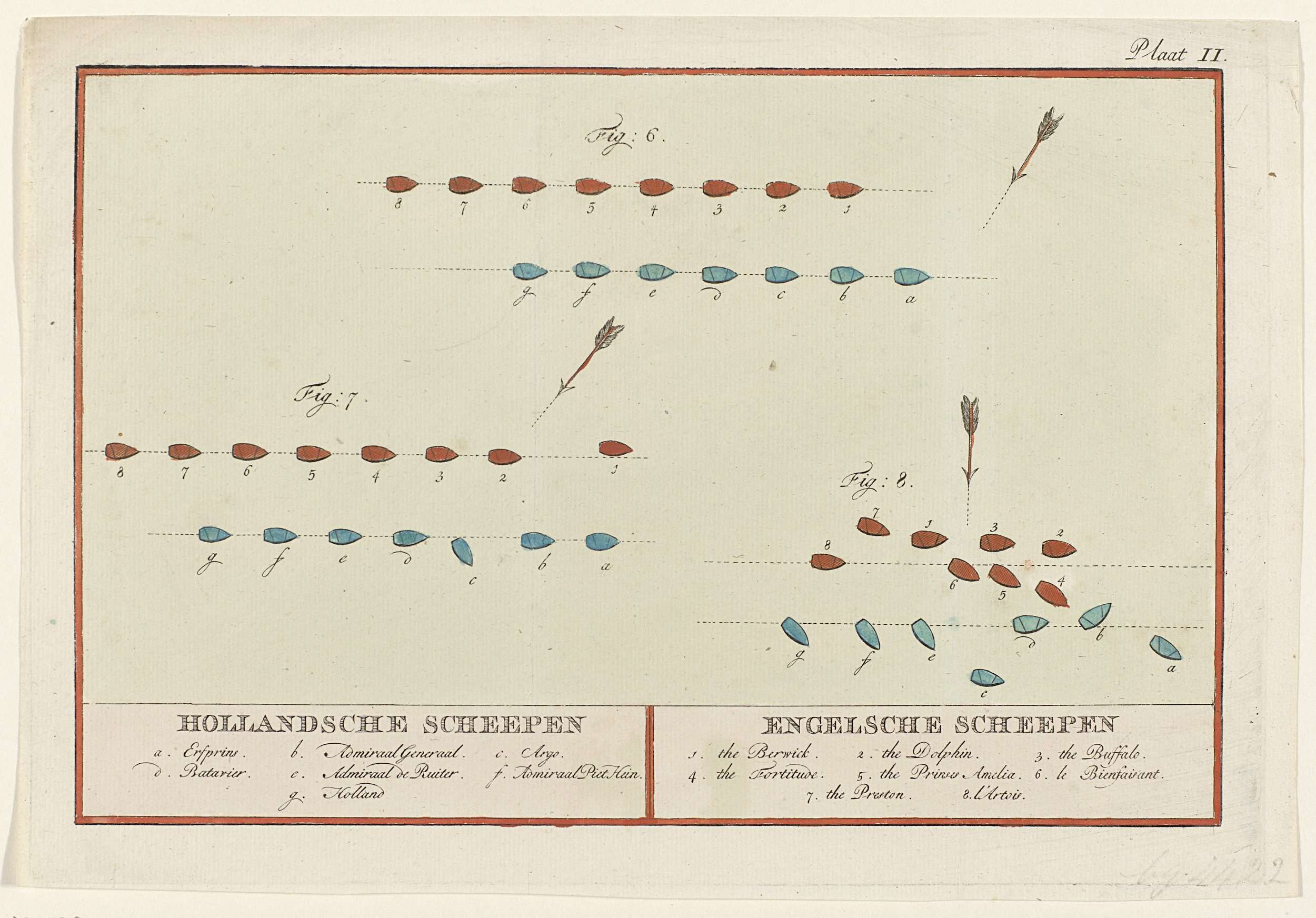 Kaart met slagordes van de Nederlandse en Engelse sc...
