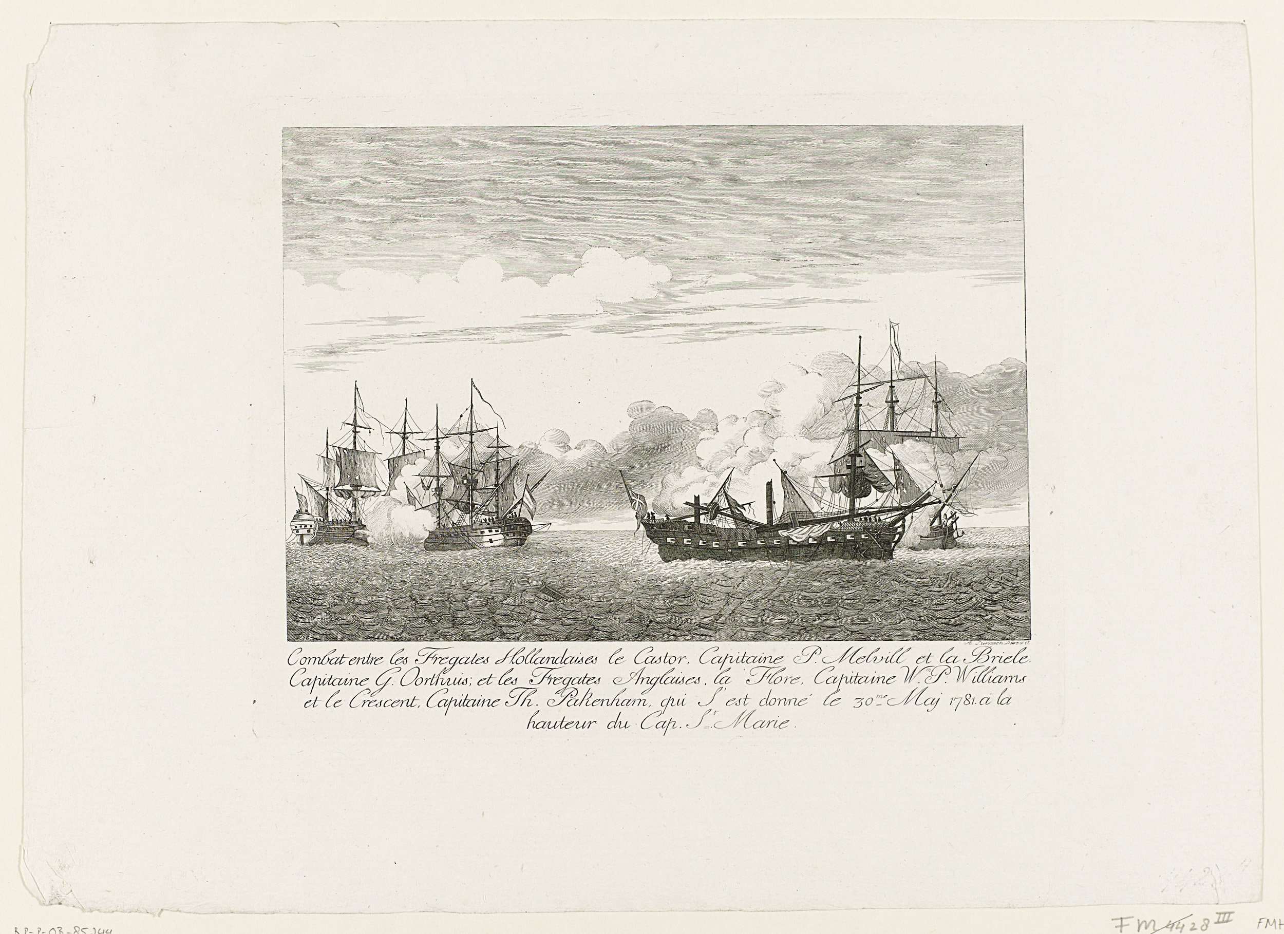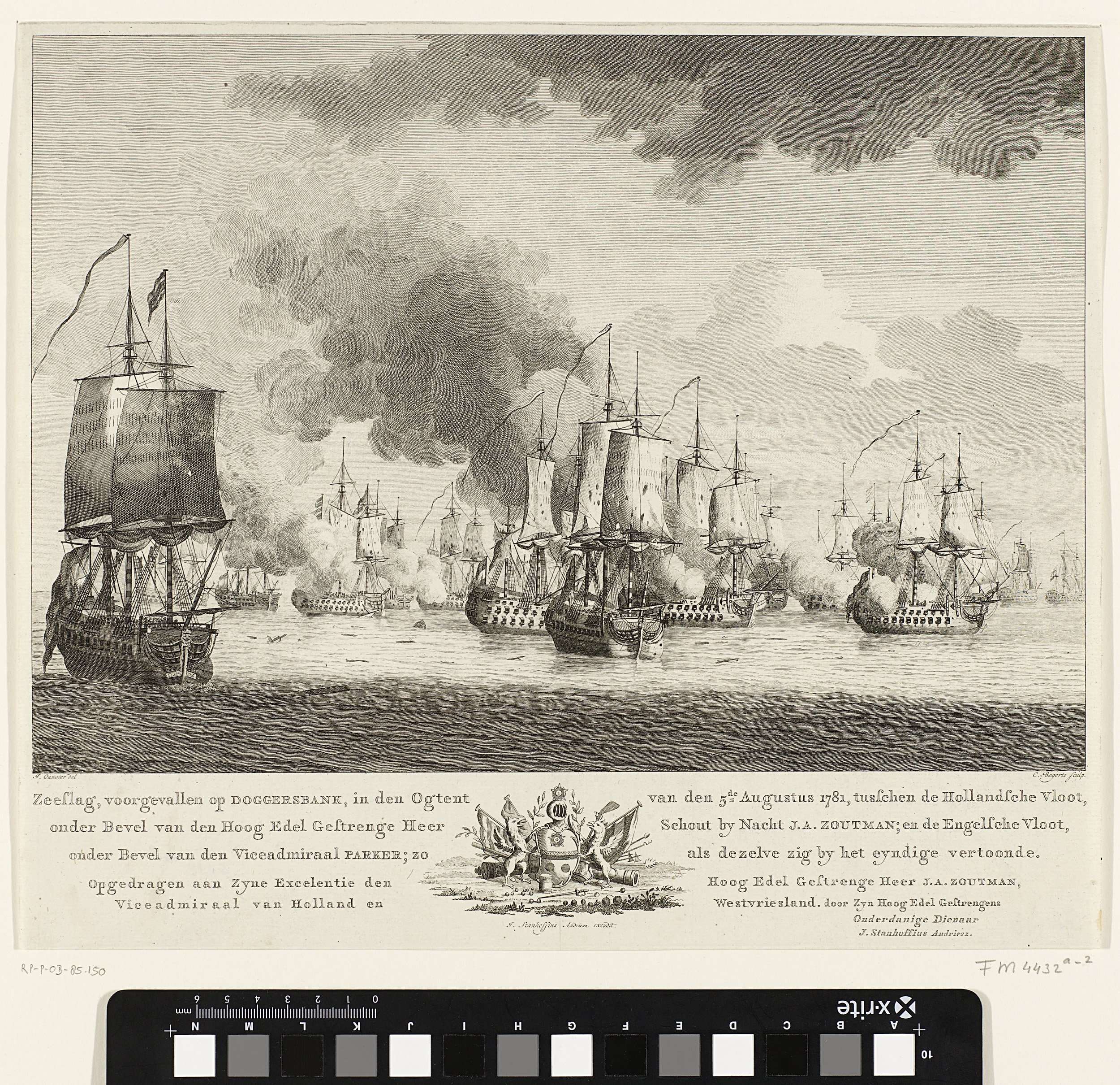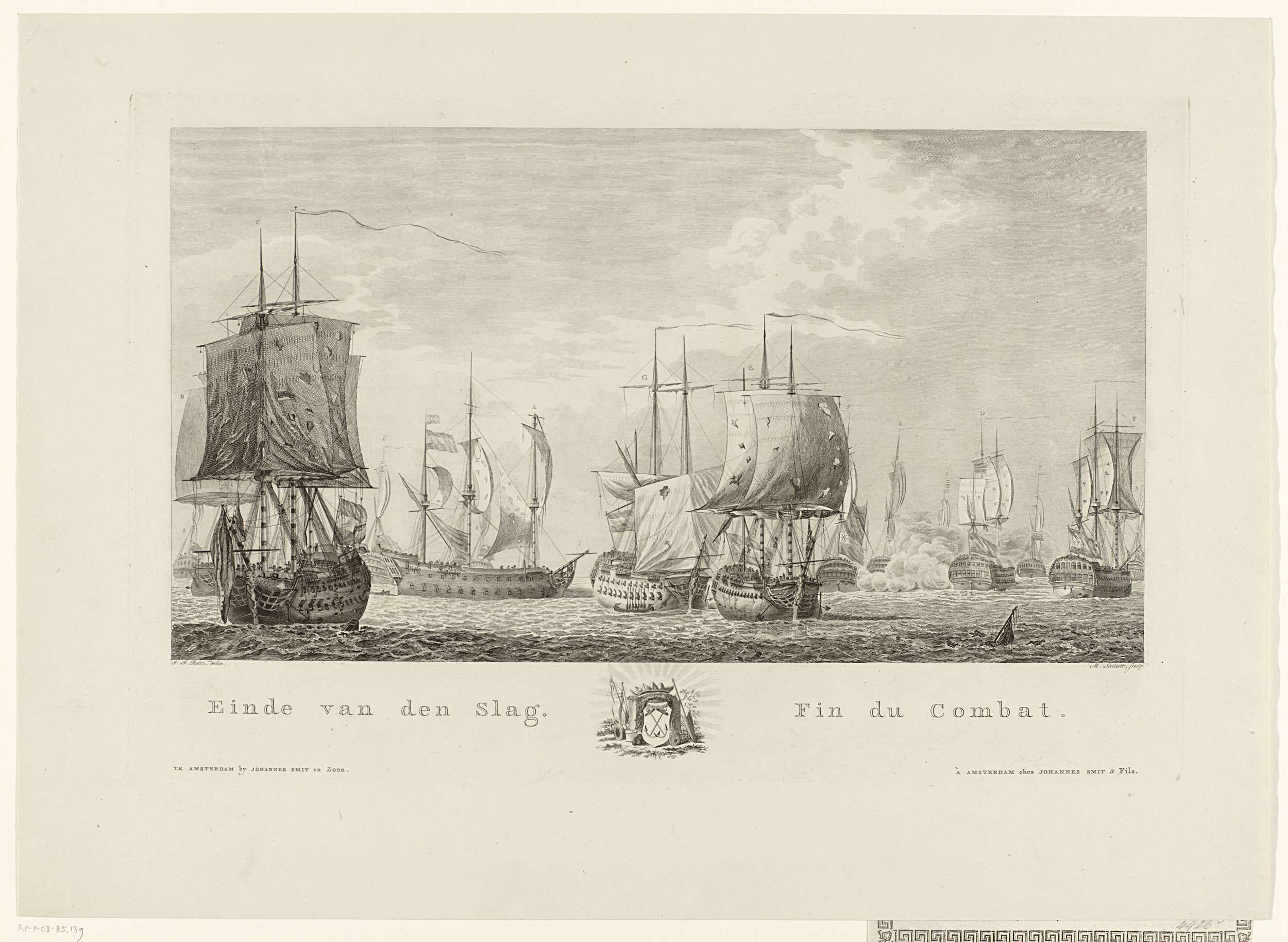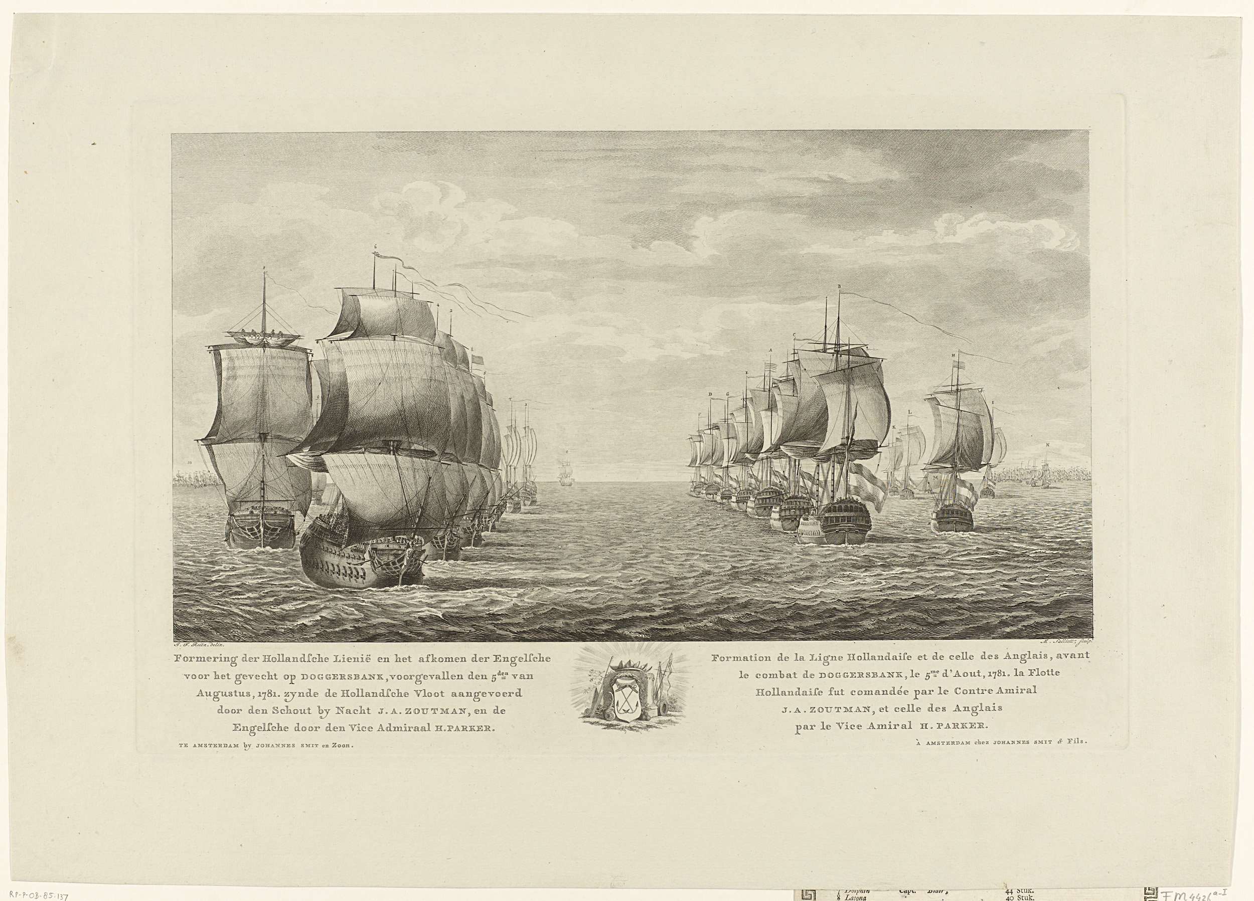 Kaart met slagordes van de Nederlandse en Engelse sc...