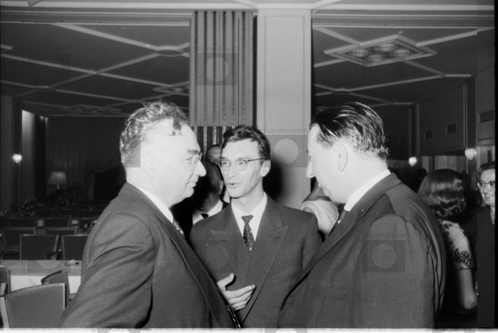 L.I. Sedov (links) en Andrew G. Haley tijdens het ru...