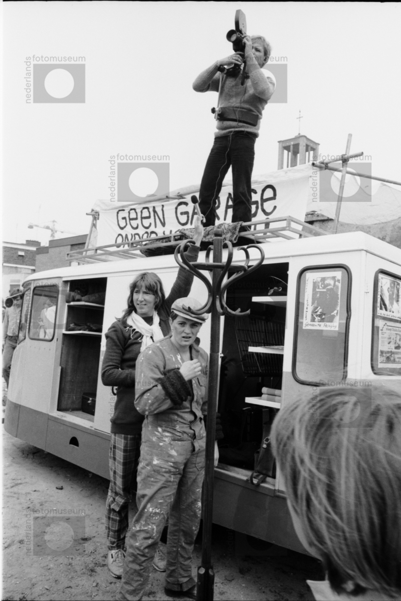 film camera man met geluidsvrouw bij protest tegen g...
