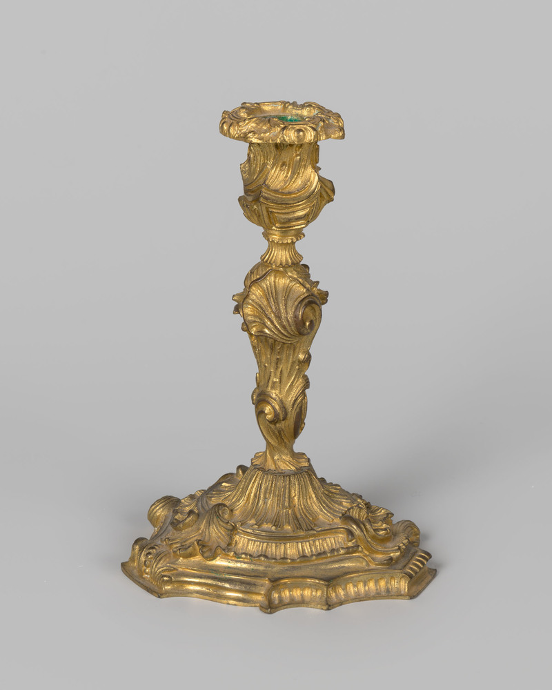 Vergulde kandelaar met rococo-motieven