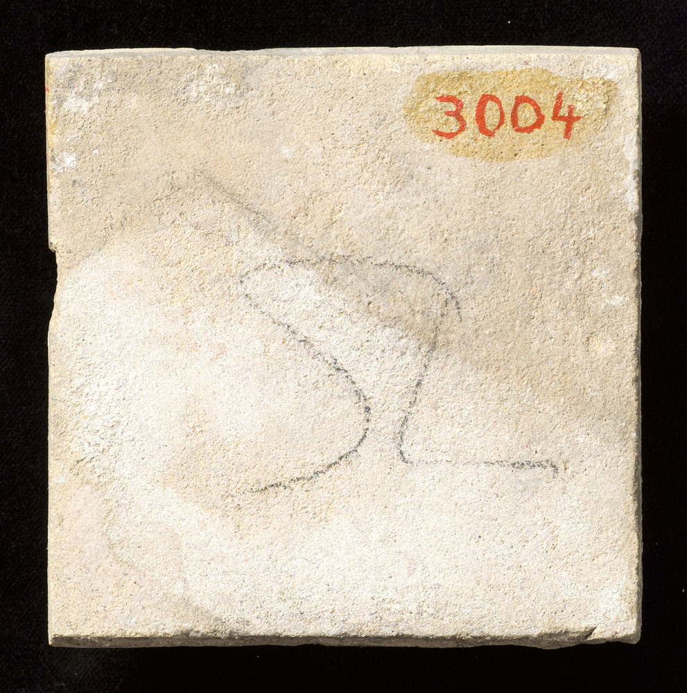 Tegel in tinglazuur met het decor 'beugelbladen', ve...