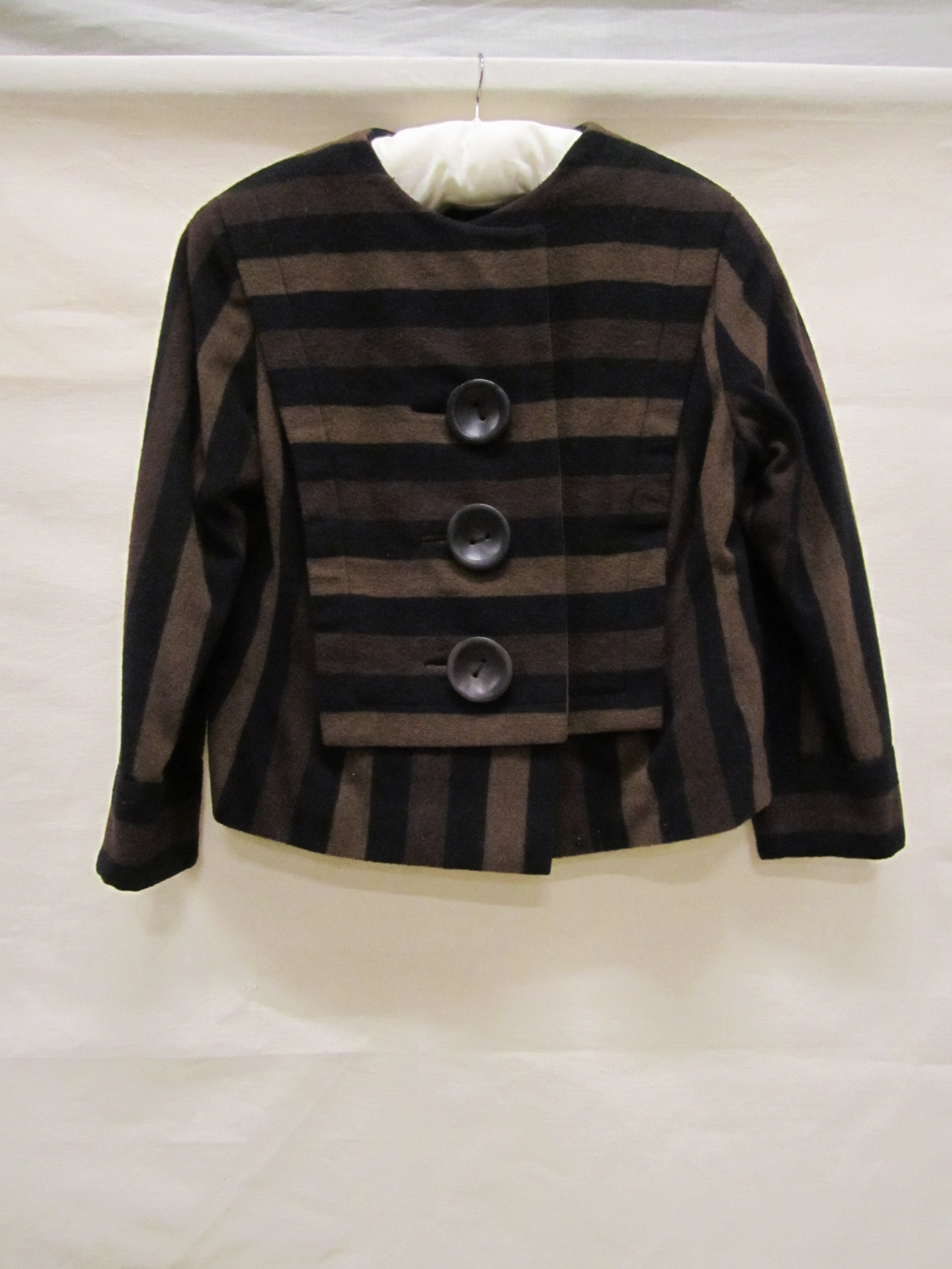 Korte mantel van gestreepte wol in zwart, donker- en...
