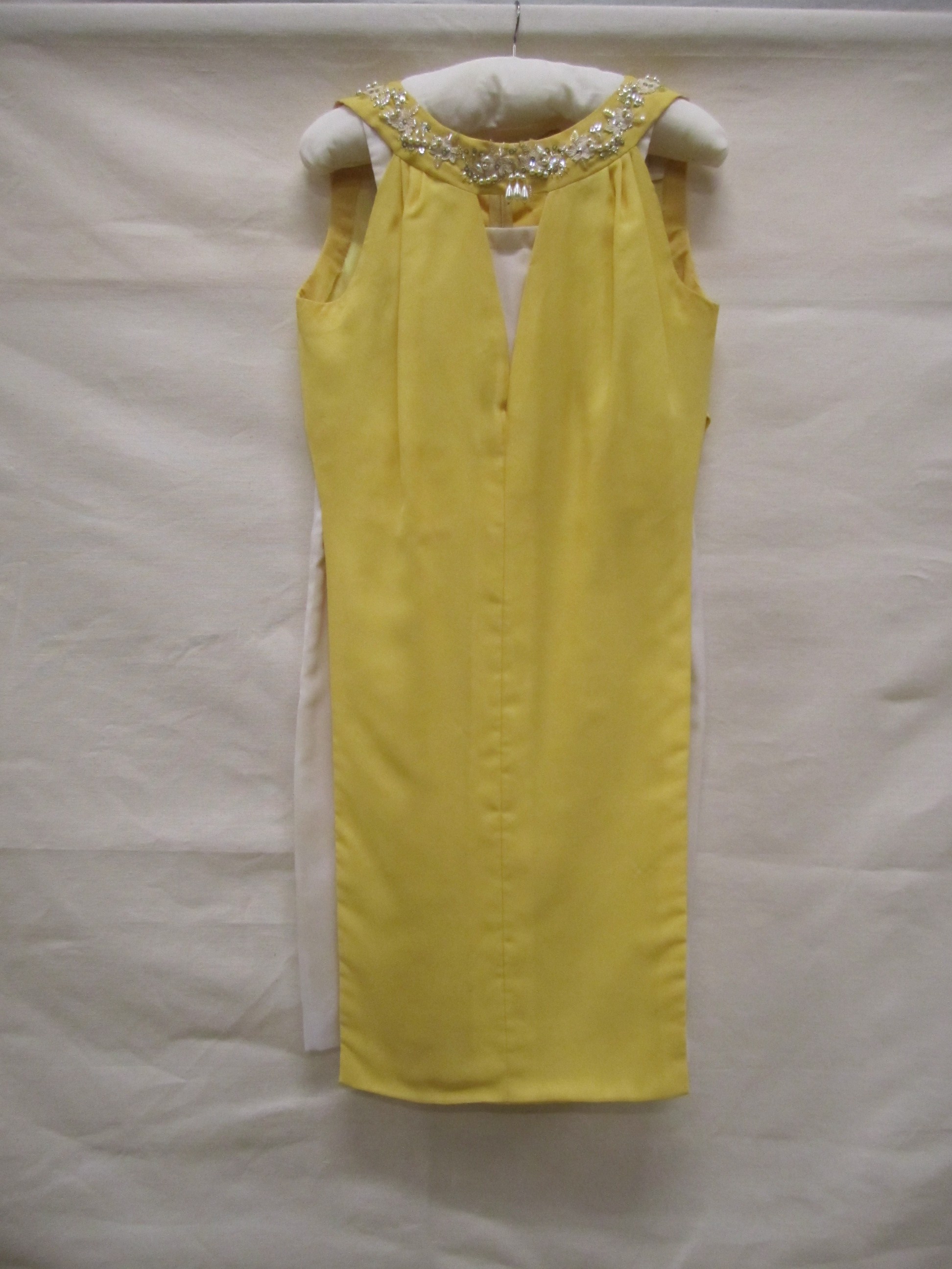 Cocktailjurk van maiskleurig nylon met versierde hal...