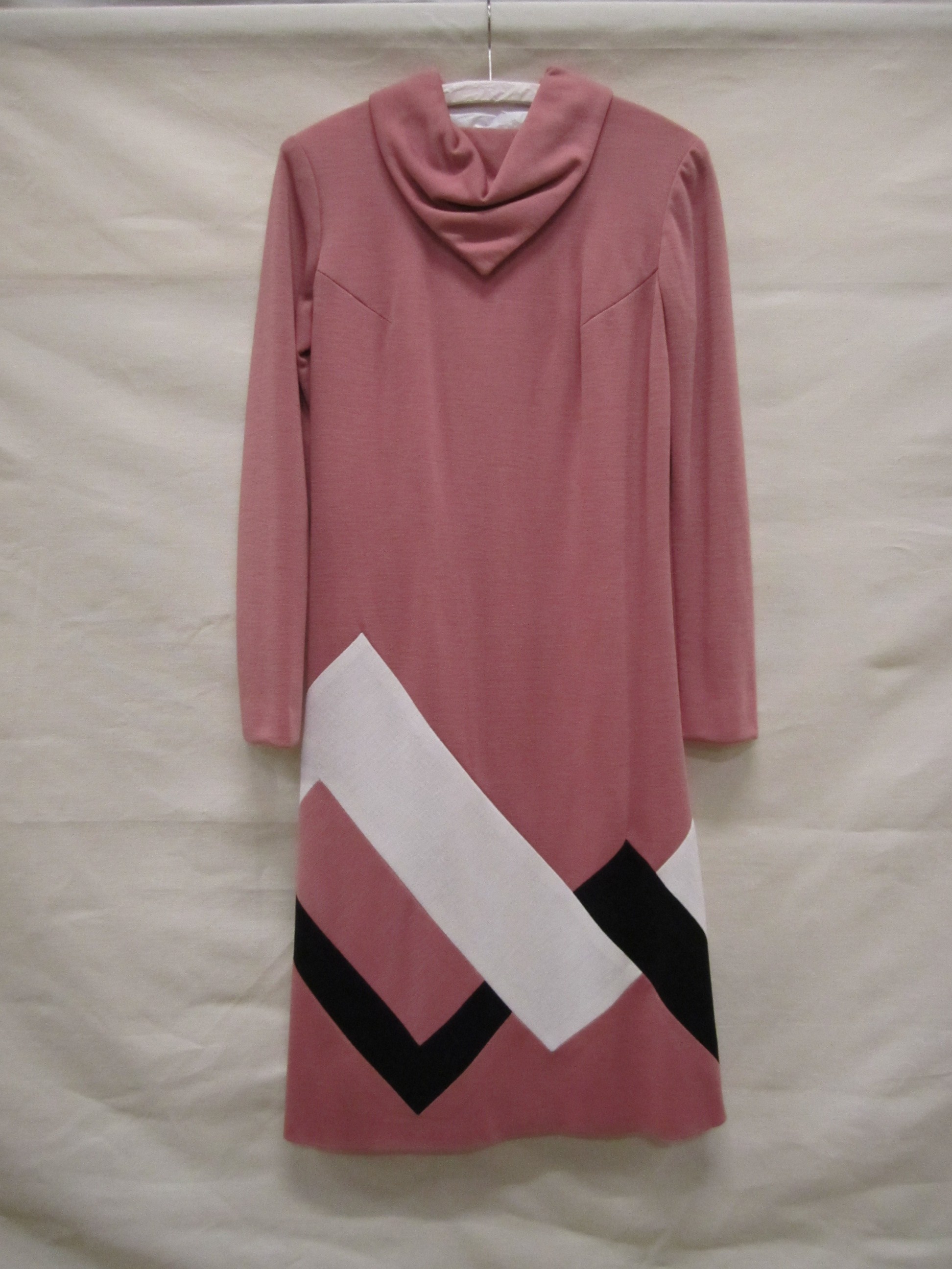 Jurk van oudroze, synthetische tricot met op de rok ...