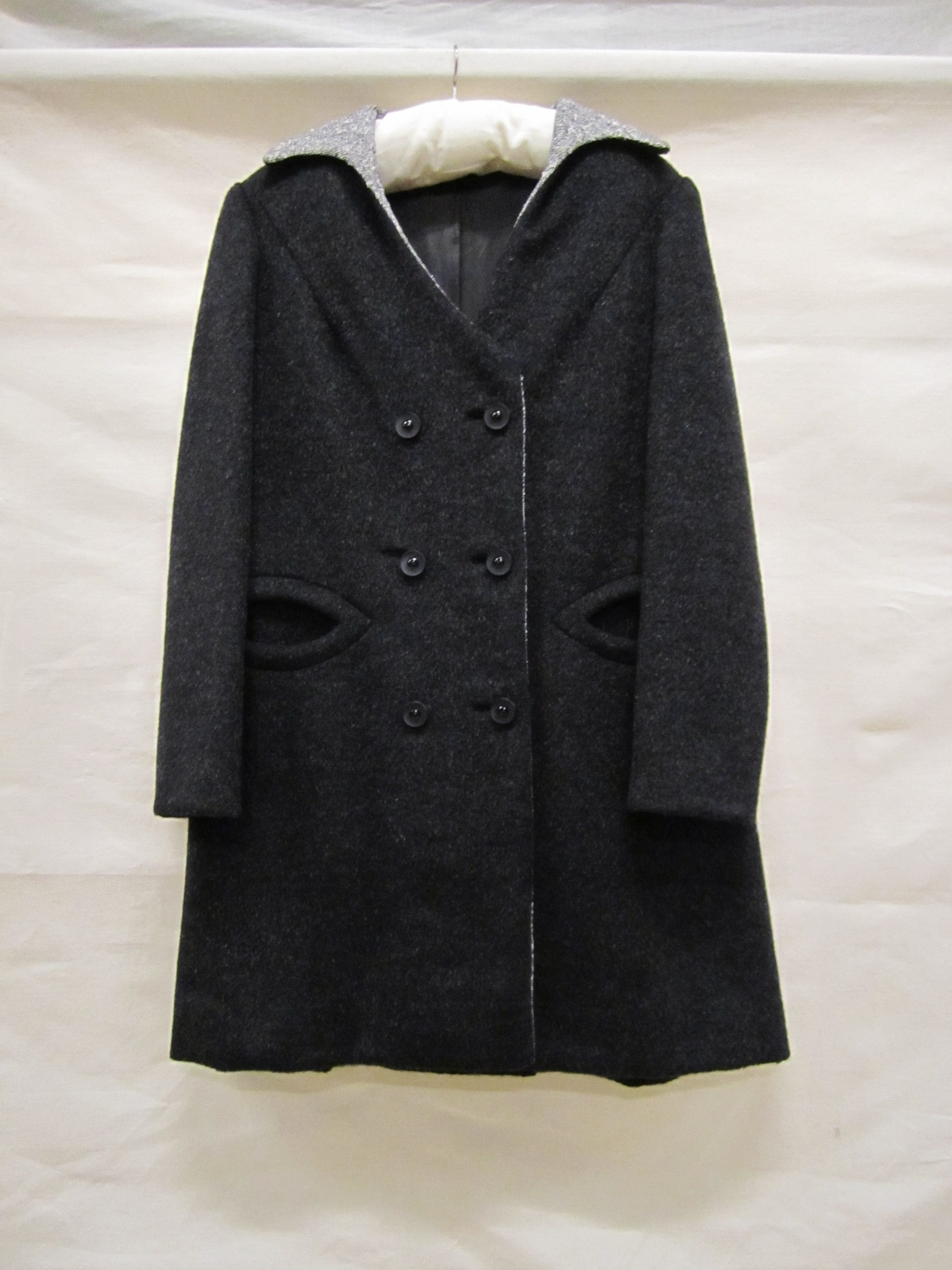 Mantel van antracietkleurige wol in 'ellipslijn&...