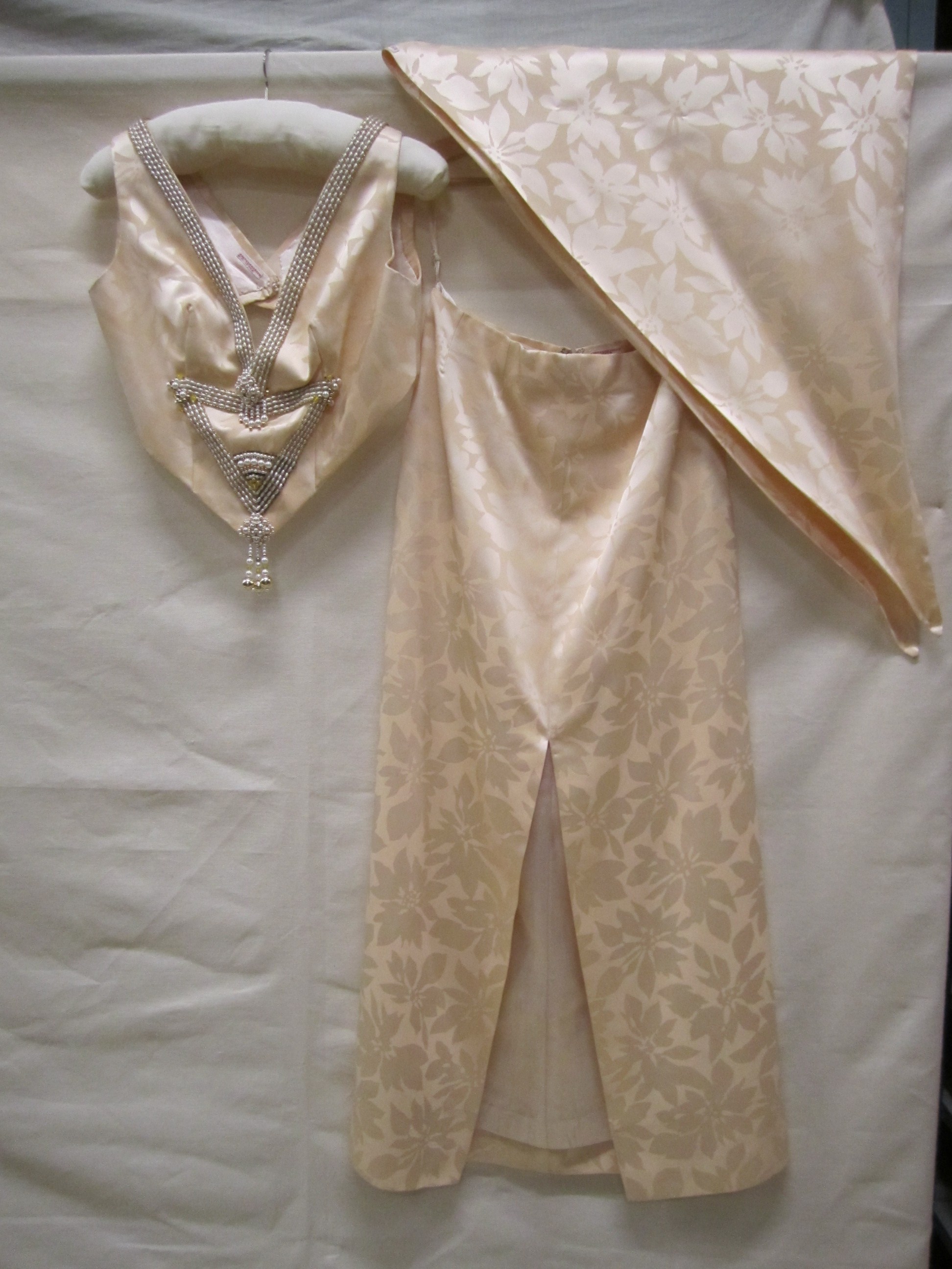 Avondensemble bestaand uit een hes, rok en sjaal van...