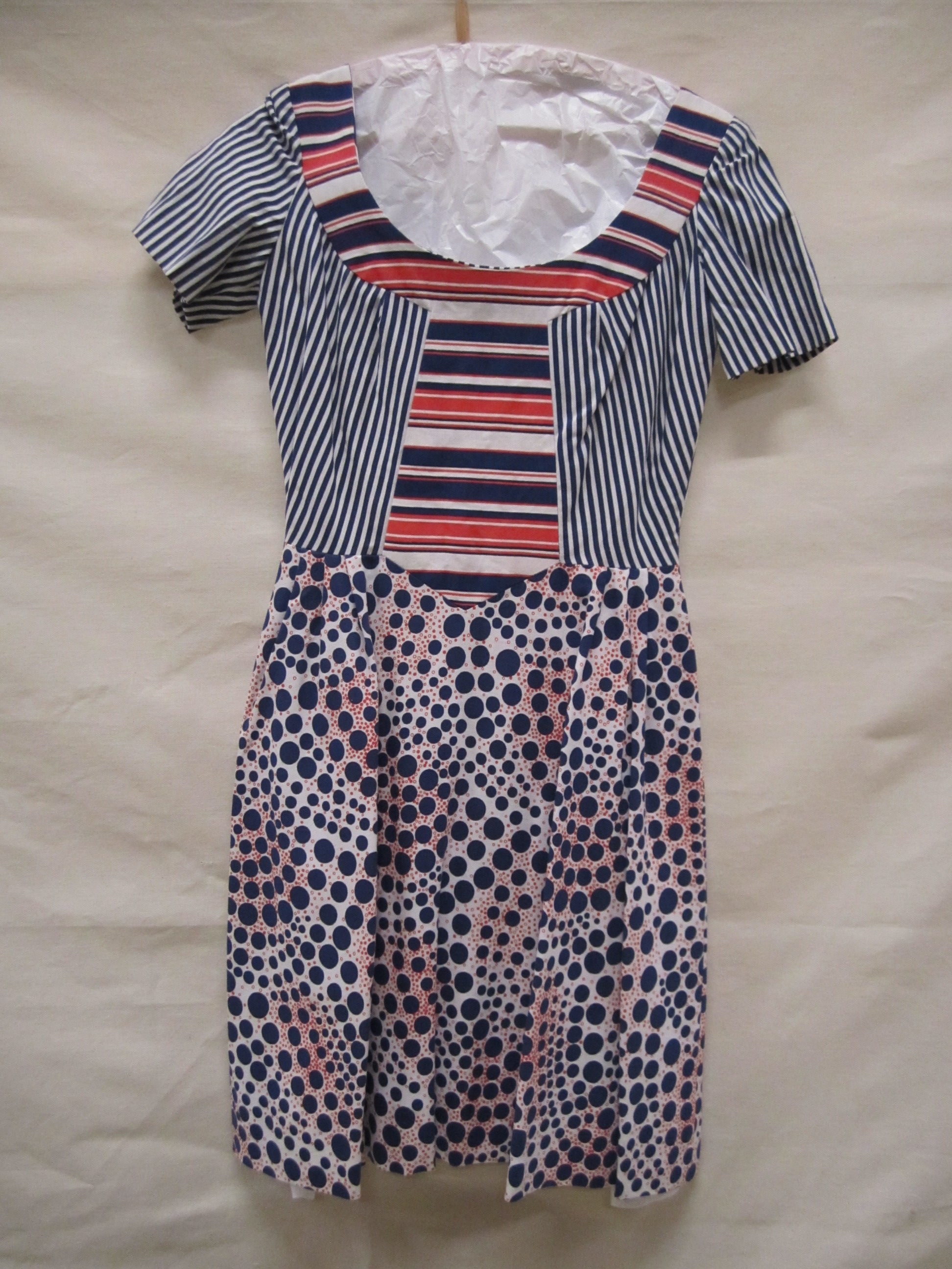 Jurk (zgn. T.V.-jurk), van synth. katoen bedrukt met...