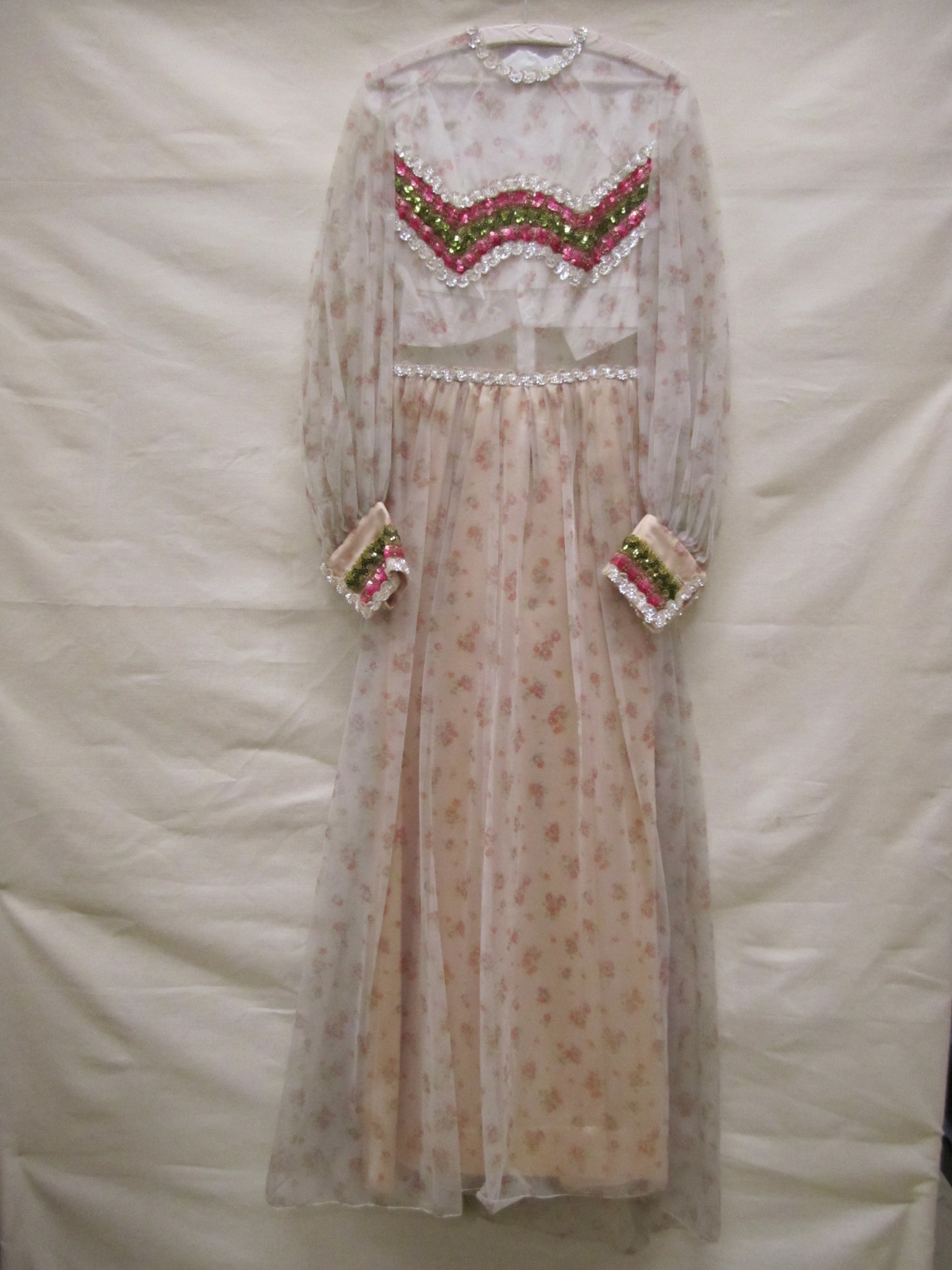 Avondjurk van wit doorzichtig nylon bedrukt met paar...
