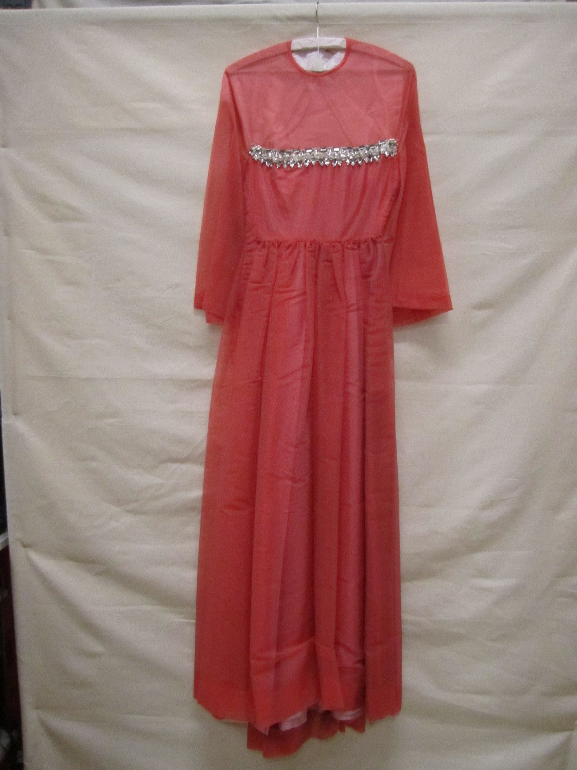 Avondjurk van oranje-bruin synthetische laméstof, do...
