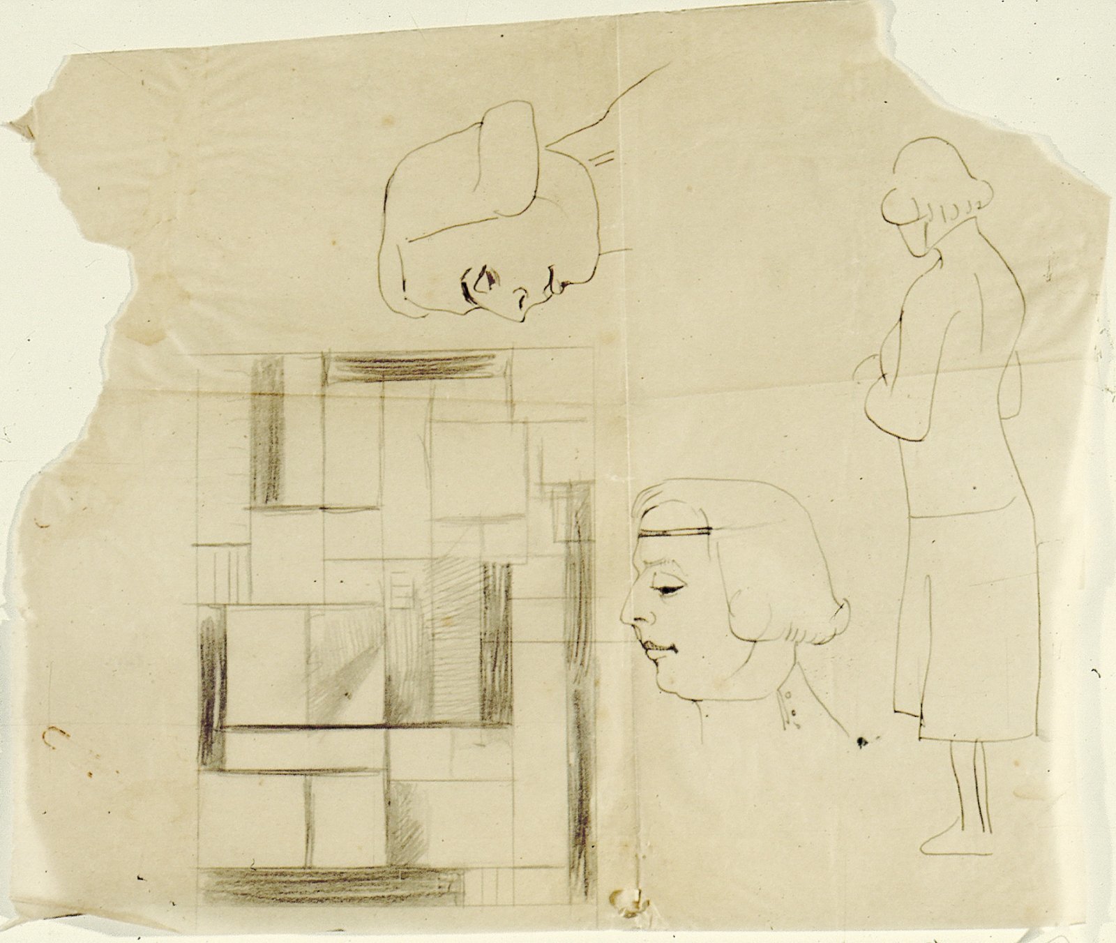 Staande vrouw, twee vrouwenhoofden en een abstracte ...