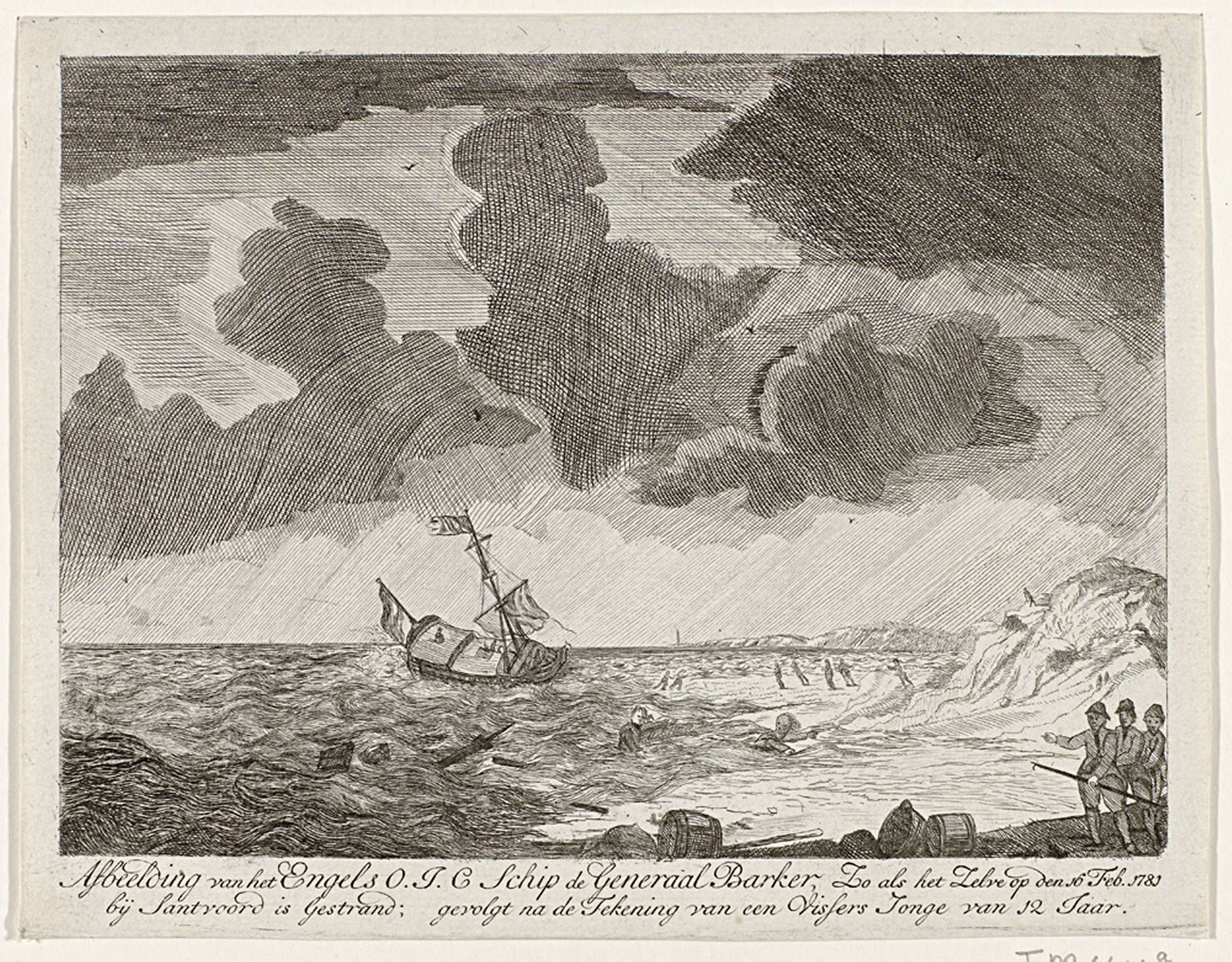 Stranding van de Generaal Barker bij Zandvoort, 1781