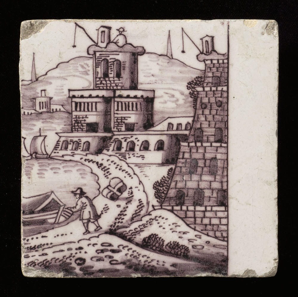 Tegel van keramiek, tinglazuur, voorstellende een la...