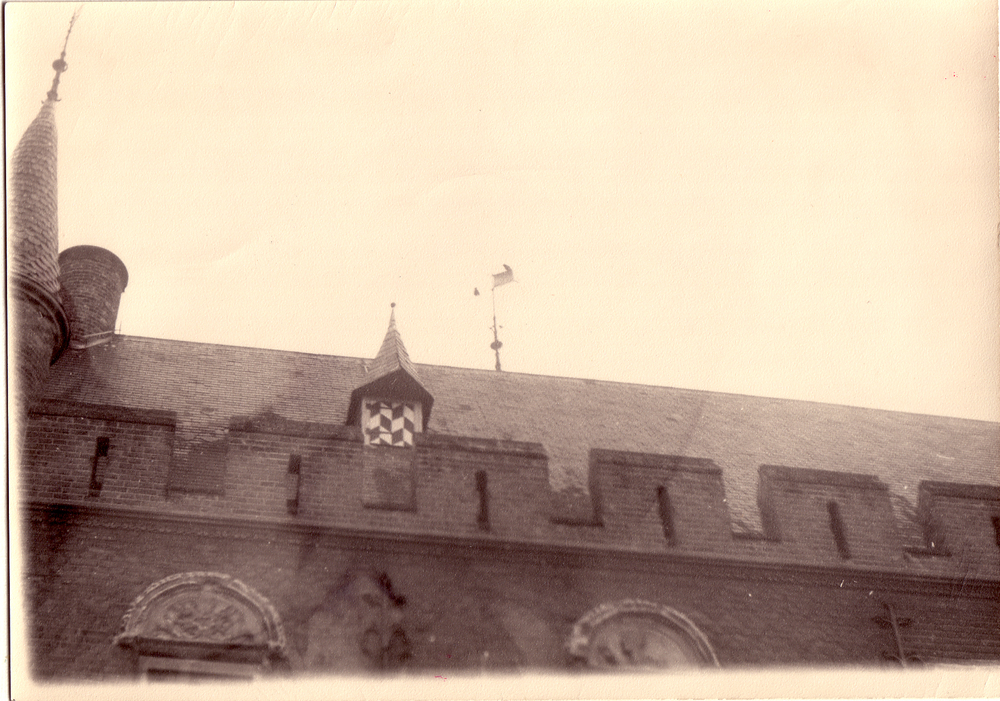 Dak Maarten van Rossumhuis met vaan.