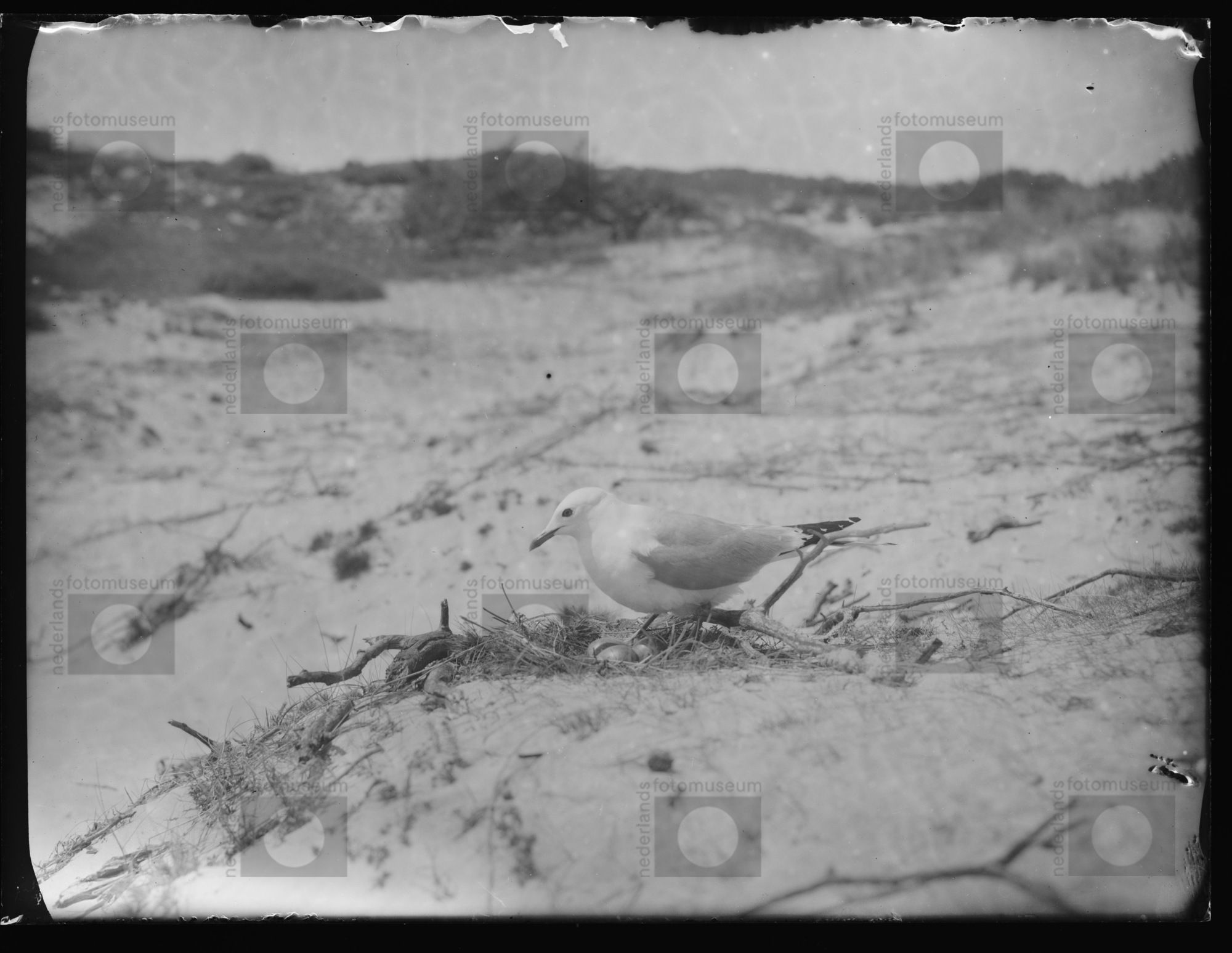 Stormmeeuw; staand bij nest, Verbrande Pan (1934)