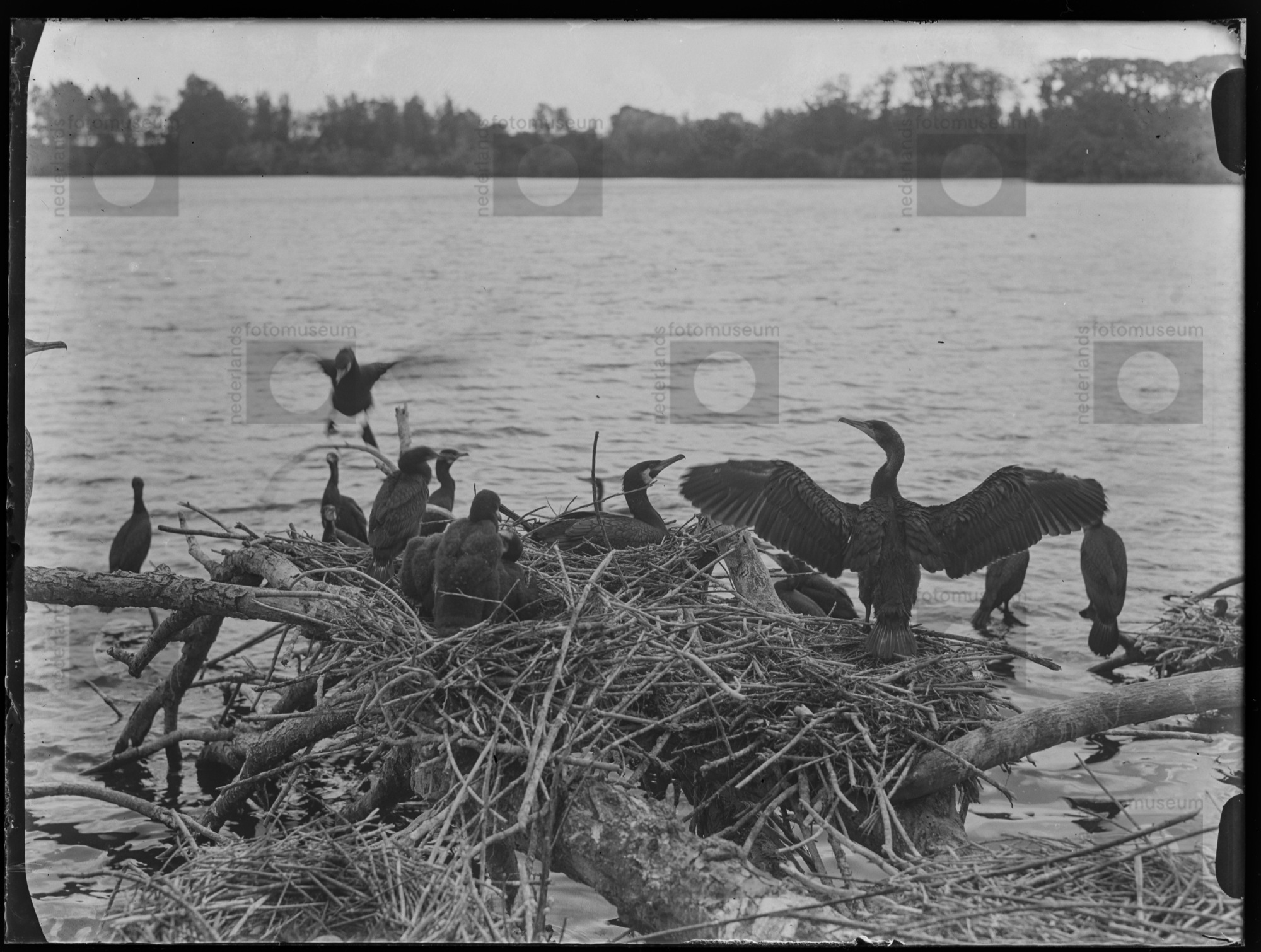Aalscholvers in broedkolonie, Lekkerkerk (1931)