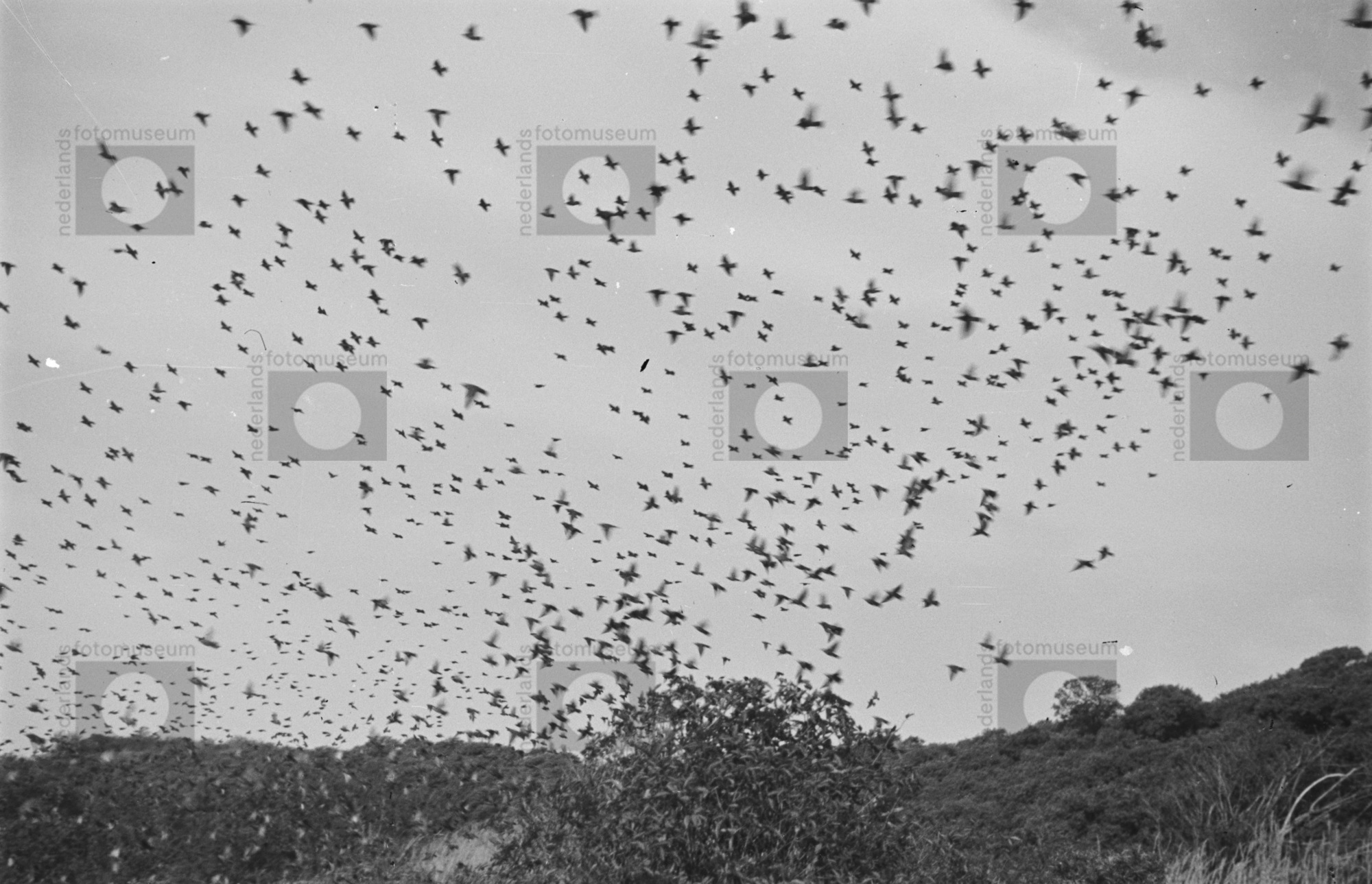 Zwerm spreeuwen tijdens trek, buitenplaats Ockenrode...
