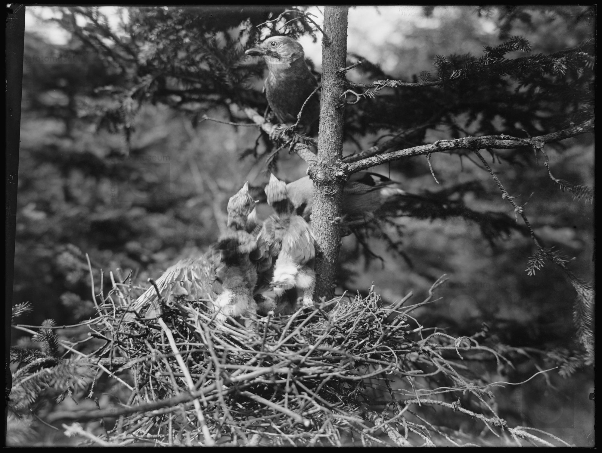 Gaaien bij hun nest met jongen, Swalmen (1912)