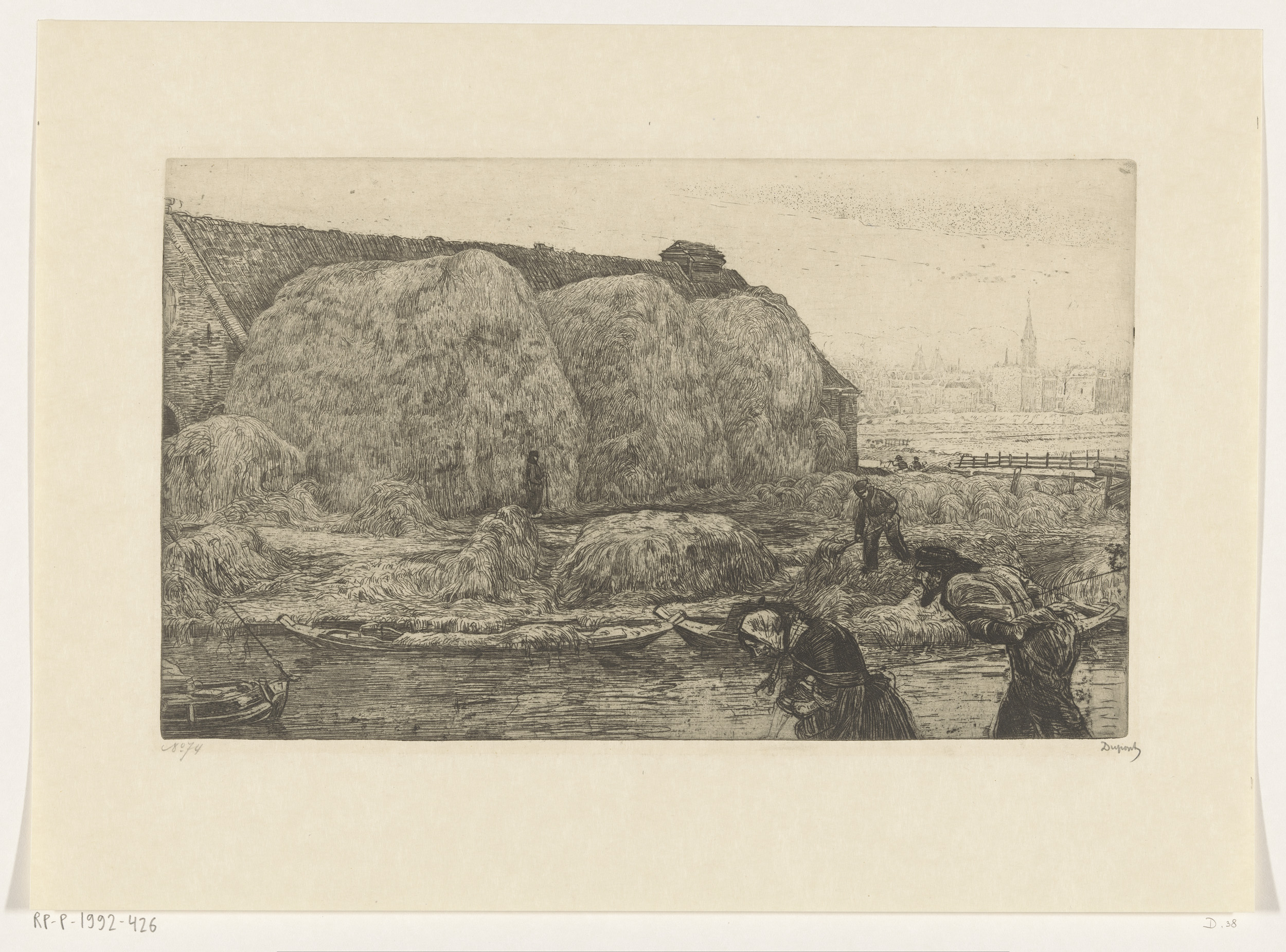 Boerderij met hooischelven aan het Jaagpad in Amsterdam