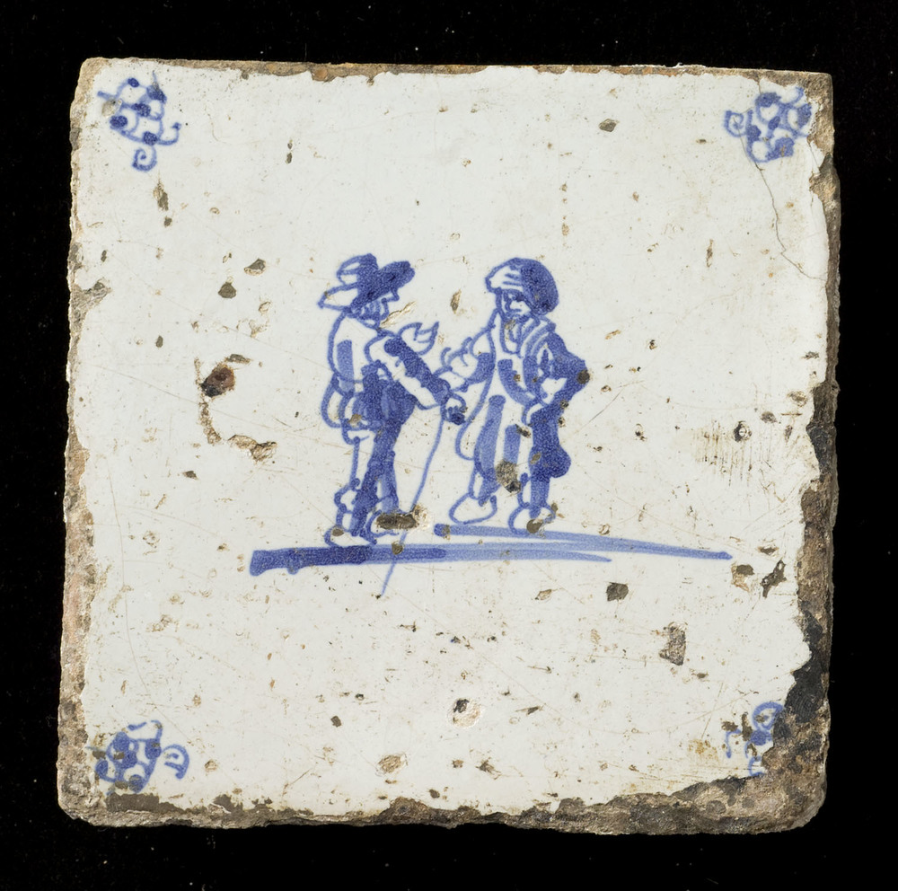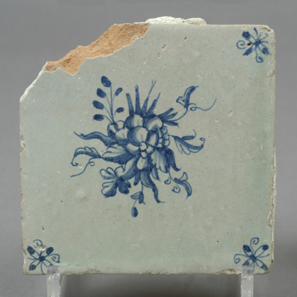 Tegel van keramiek, gemaakt in Nederland ca. 1660-1700