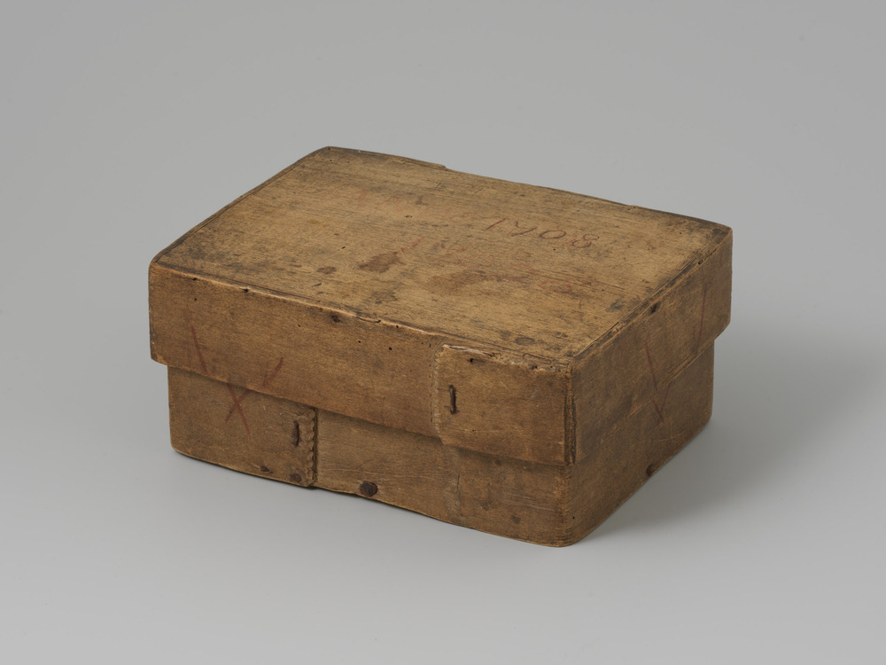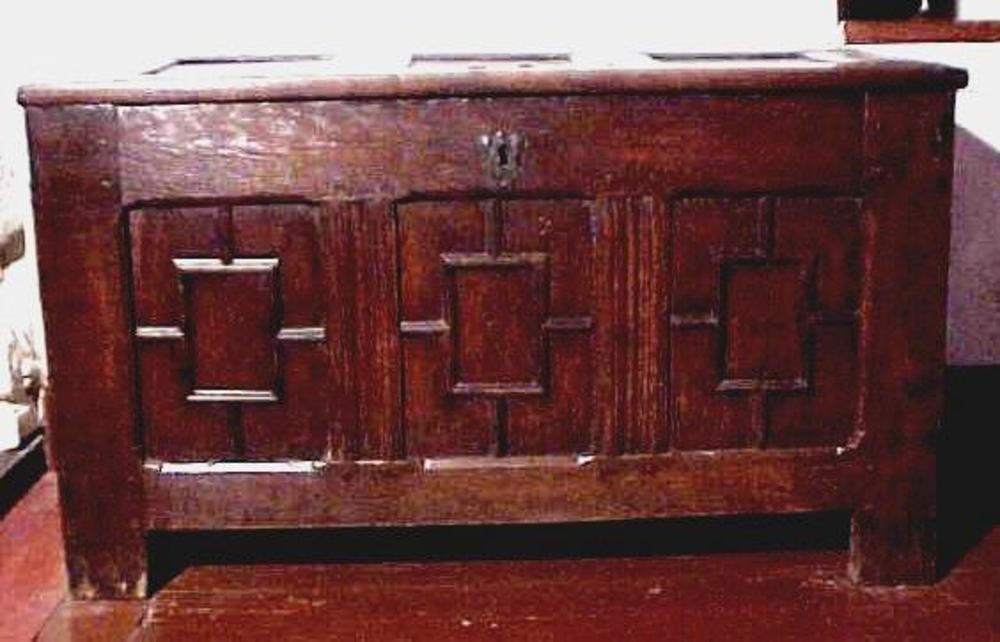 kist met panelen van kornieswerk en slot. Eikenhout....