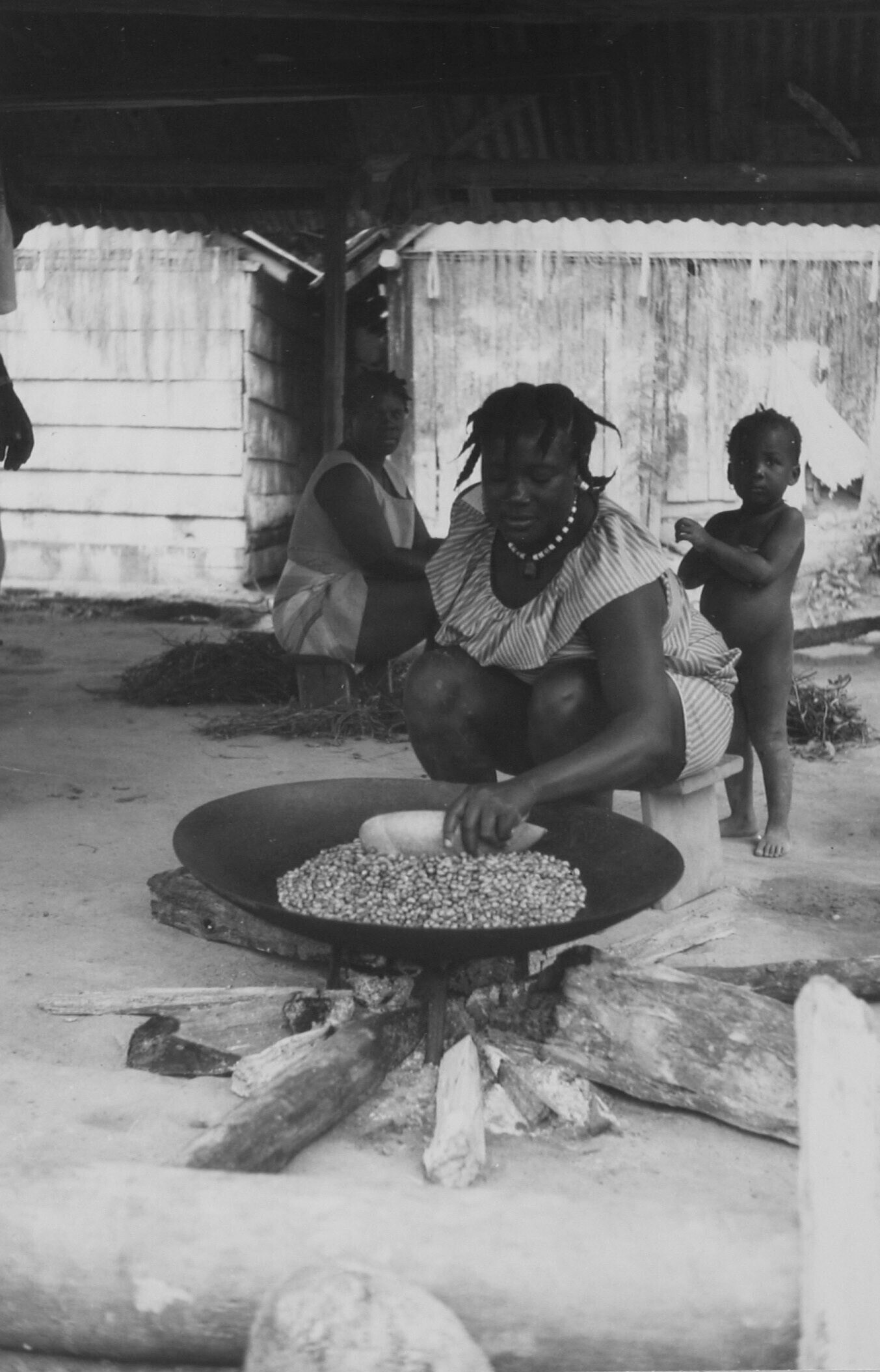 Het roosteren van noten op een houtvuurtje (Dorpje M...