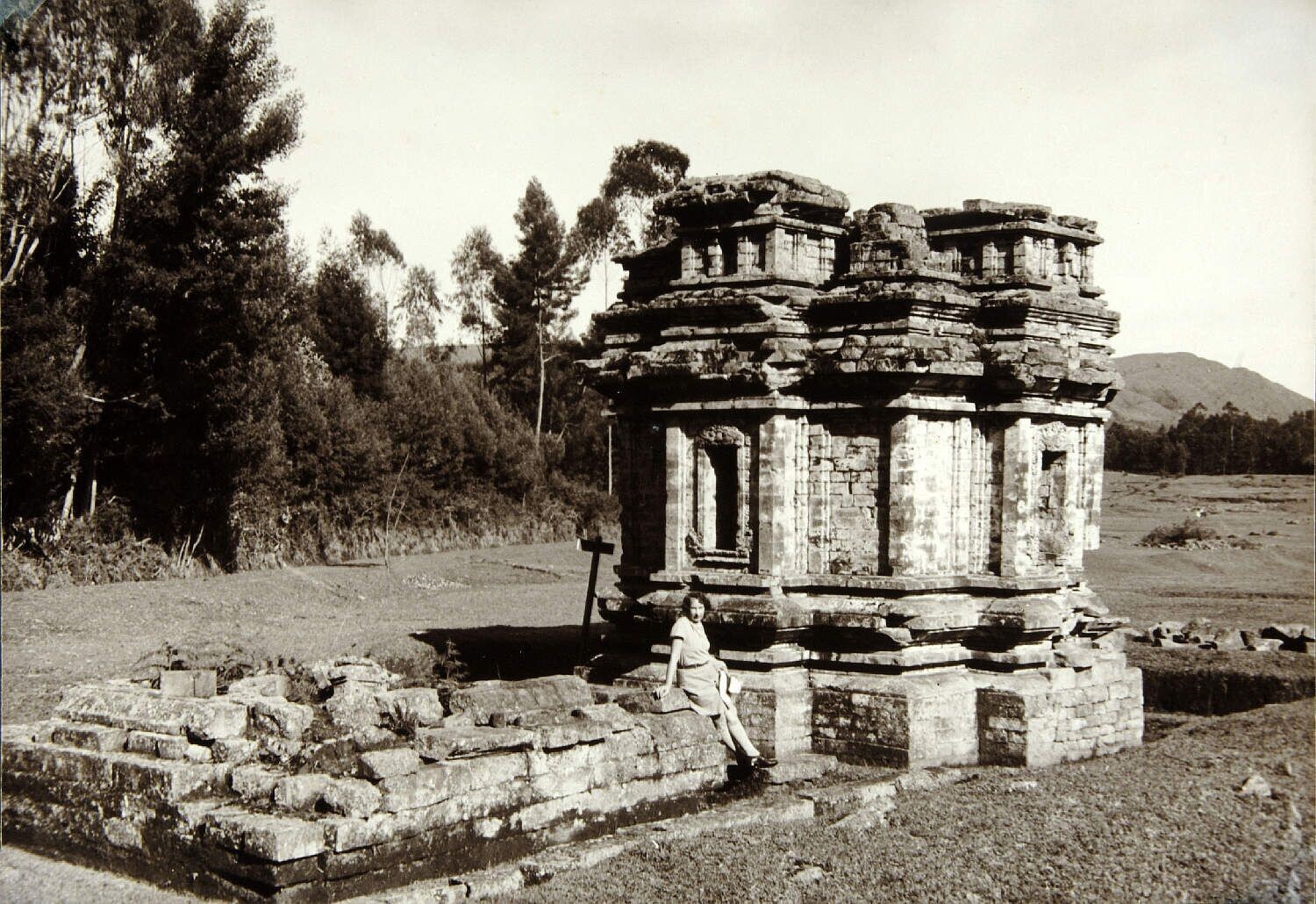 European woman in front of the Candi Gatutkaca at th...