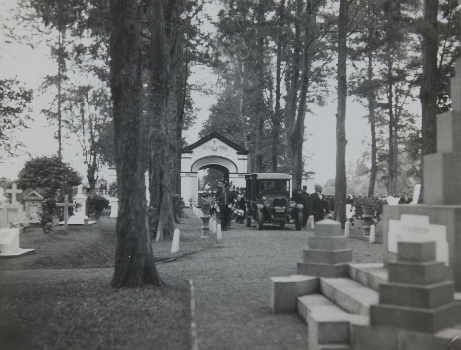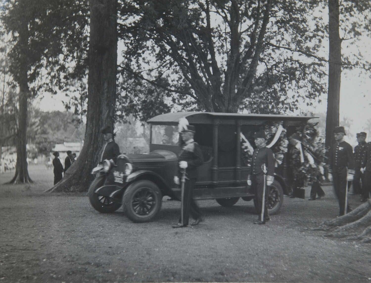Arrival of the motor hearse transporting the coffin ...