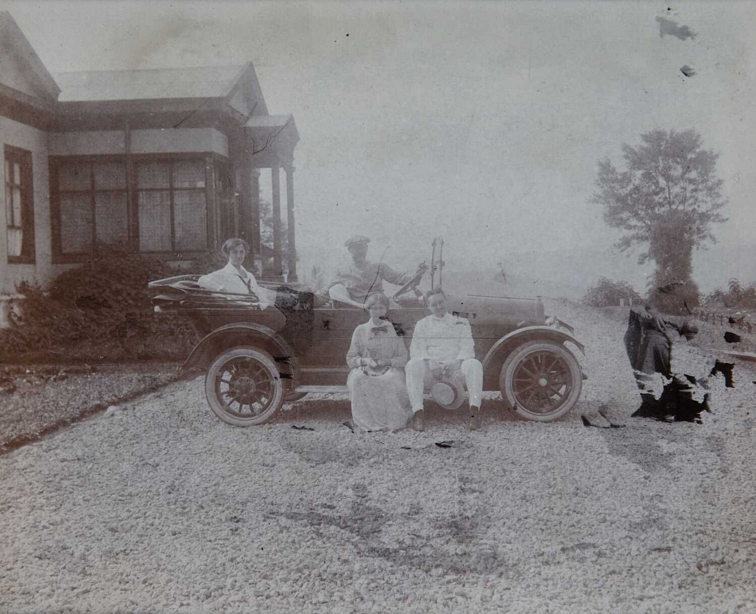 Europeanen bij een auto voor de administrateurswonin...