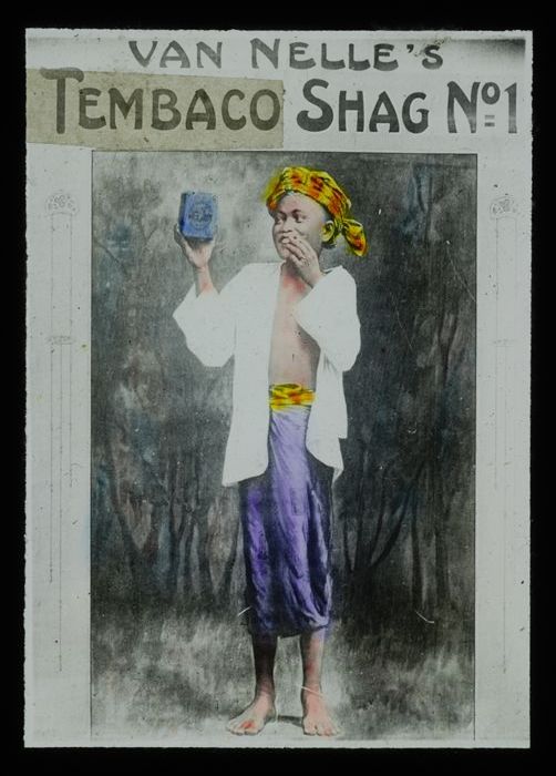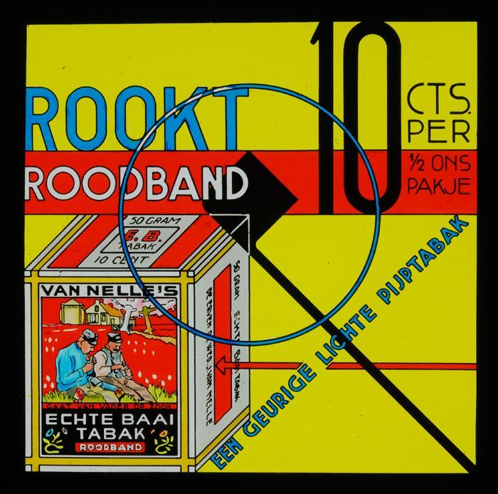 Glasdia van Van Nelle met bioscoopreclame voor pakje...