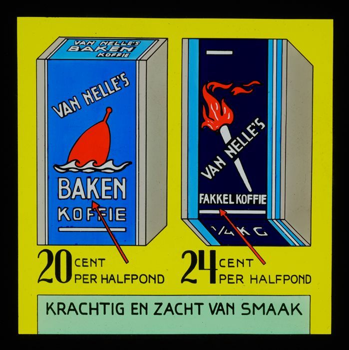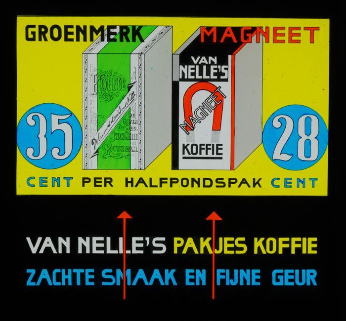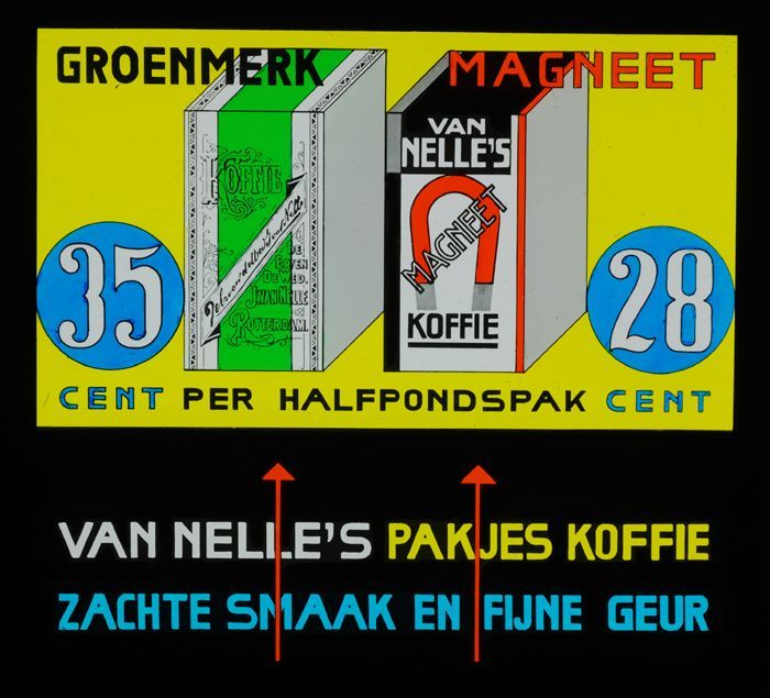 Twee glasdia´s van Van Nelle, bioscoopreclame voor d...