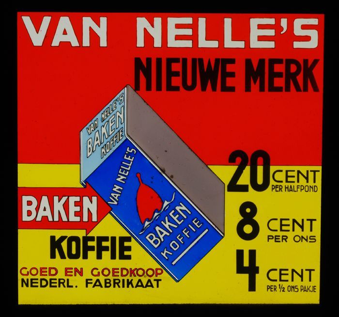 Glasdia van Van Nelle met bioscoopreclame voor Baken...