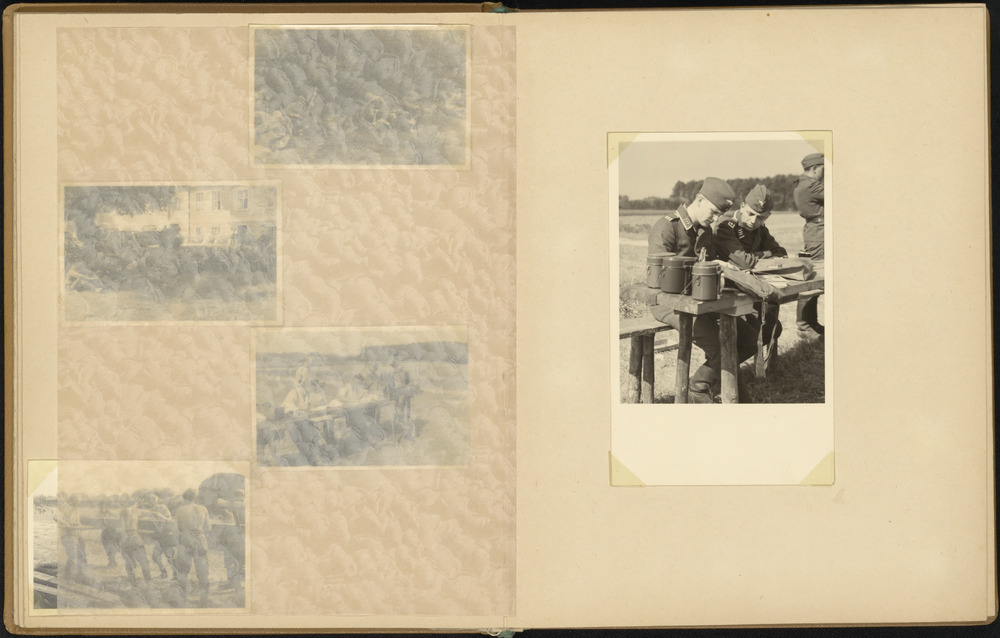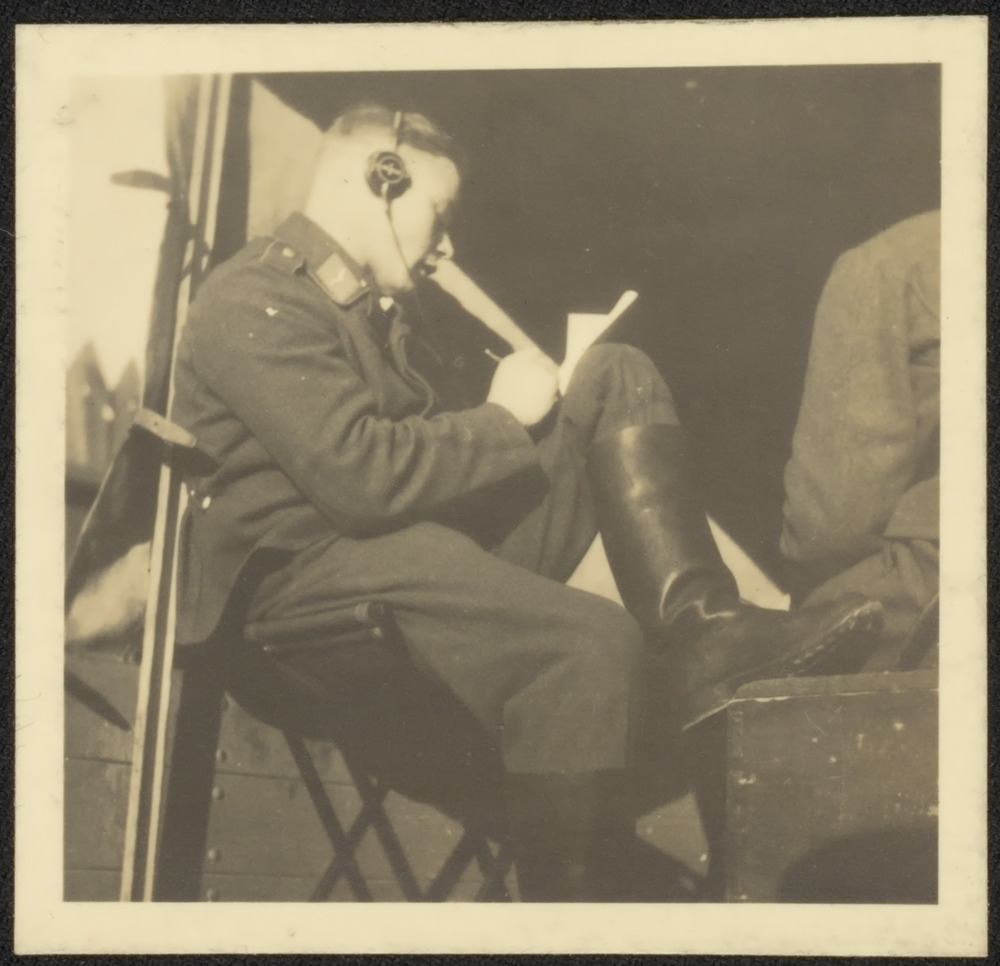 Twee Luftwaffe Feldwebel (?) zitten buiten aan een r...