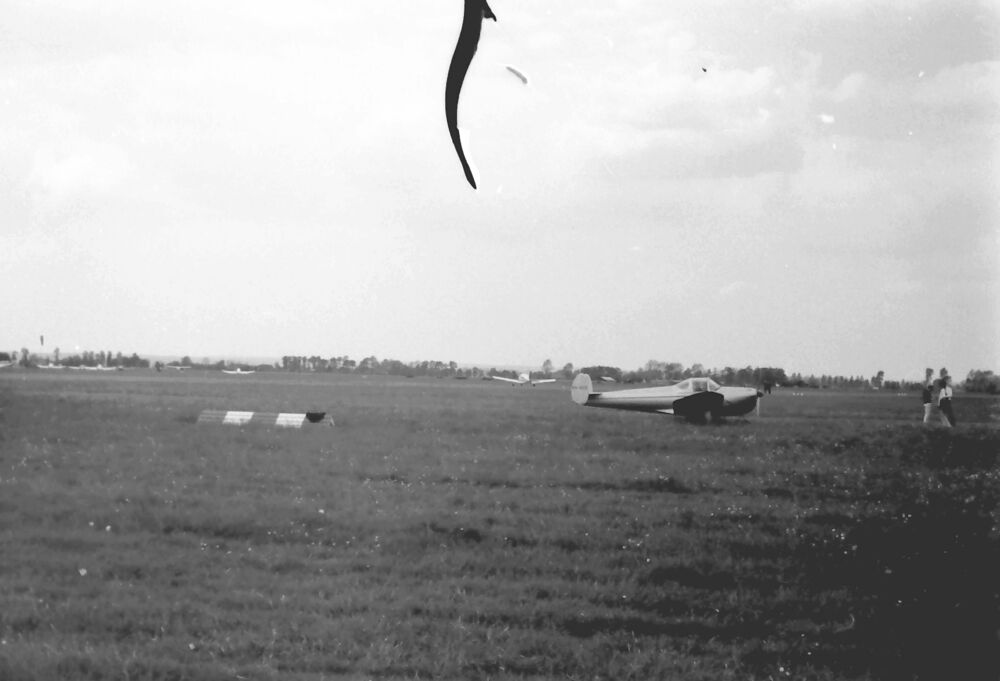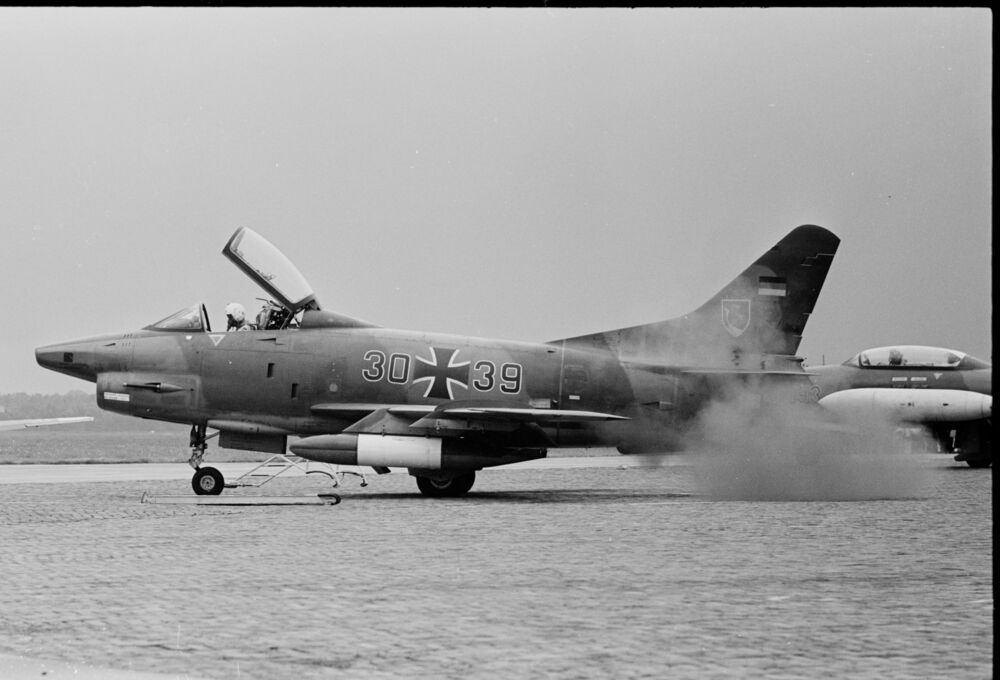 Een Republic F-84F Thunderstreak tussen twee Saval-K...