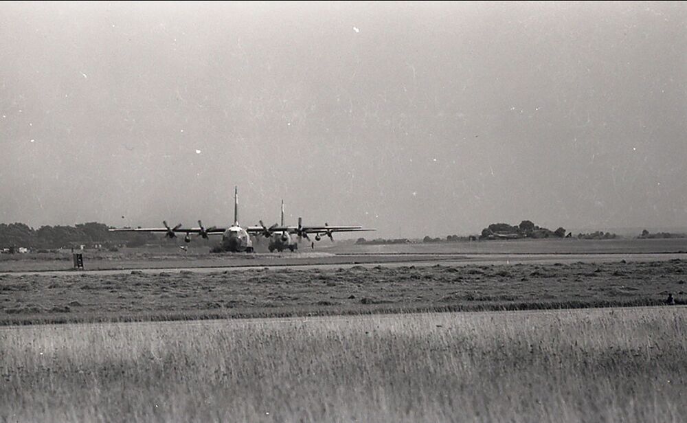 Lockheed C-130K 'Hercules C Mk-1' RAF op de rolbaan.