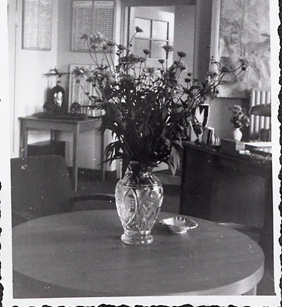 Vaas met bloemen in het kantoor van Wolfgang Falck.
