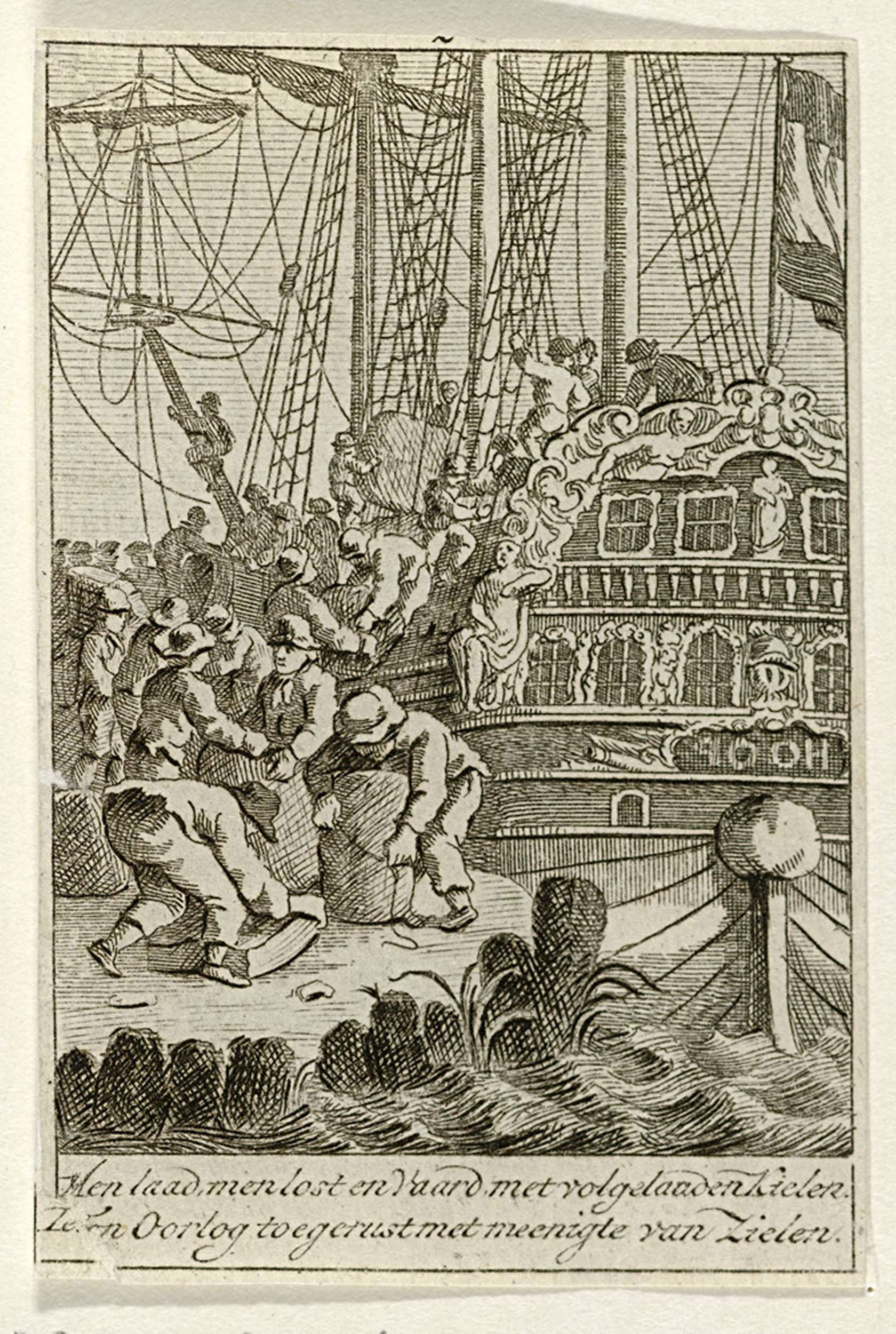 Het laden en lossen van een Hollands schip, ca. 1780...
