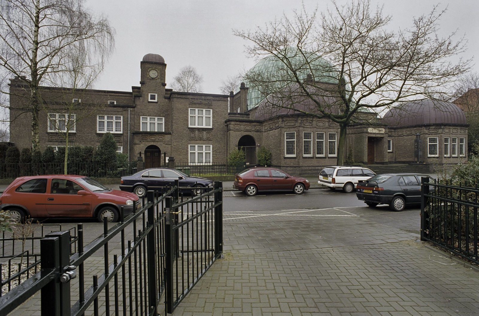 Voorkant van de synagoge te Enschede met rechts het ...