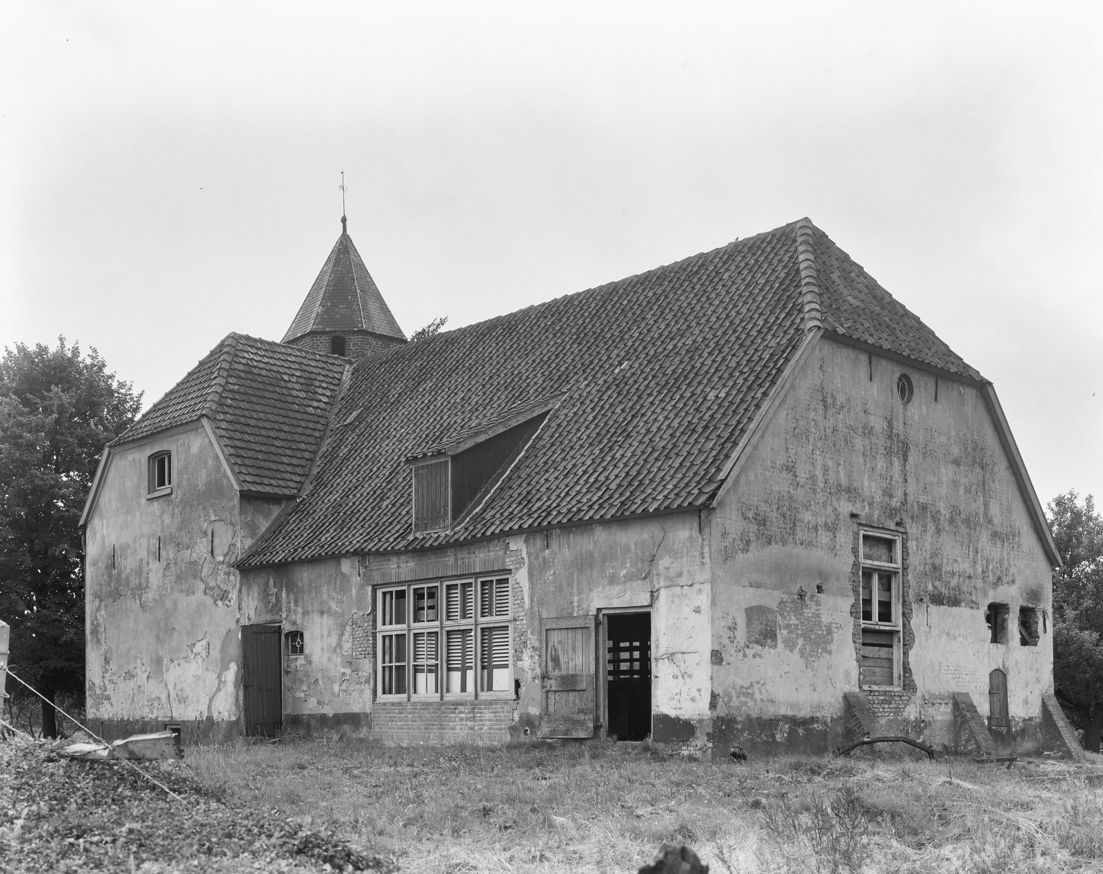 Zijgevel buitenhuis / boerderij met de traptoren op ...