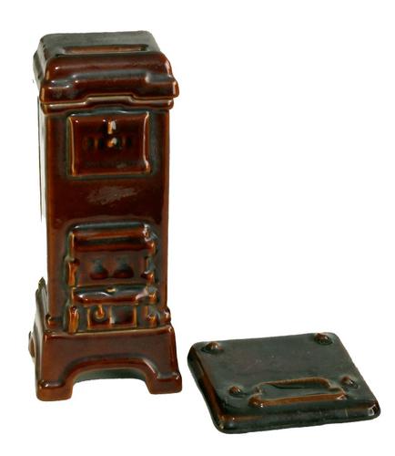 Kolenkachel spaarpot. IJzeren hoge bruin geglazuurd...